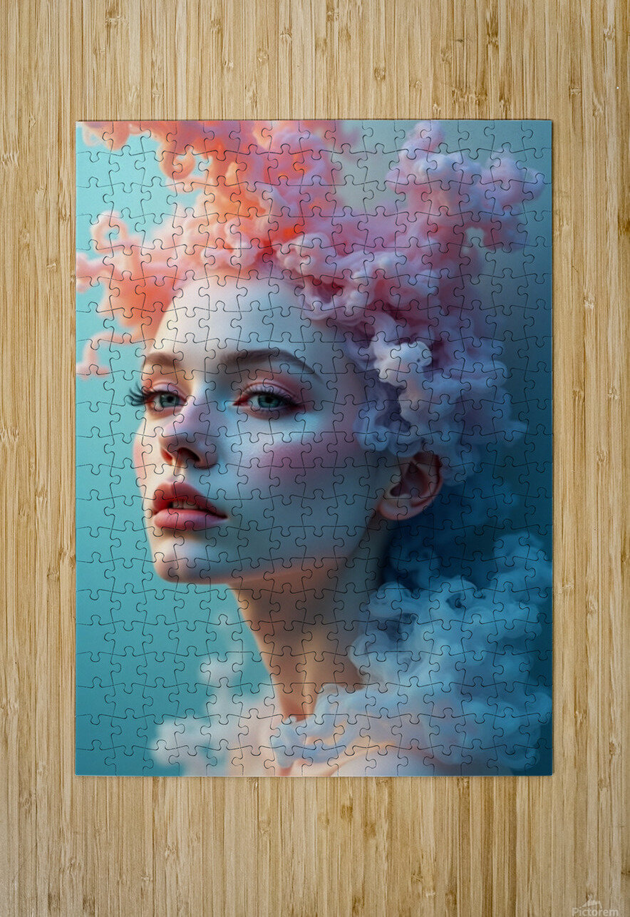 Ethereal Bloom: Dreamy Woman Portrait with Flowing Coral Hair RACHID RHAMMOUD Puzzle printing