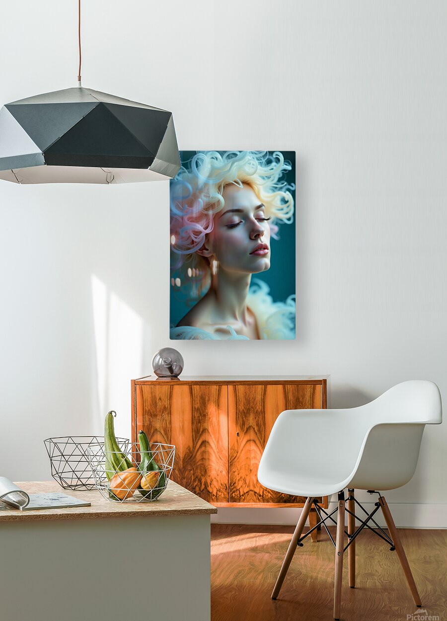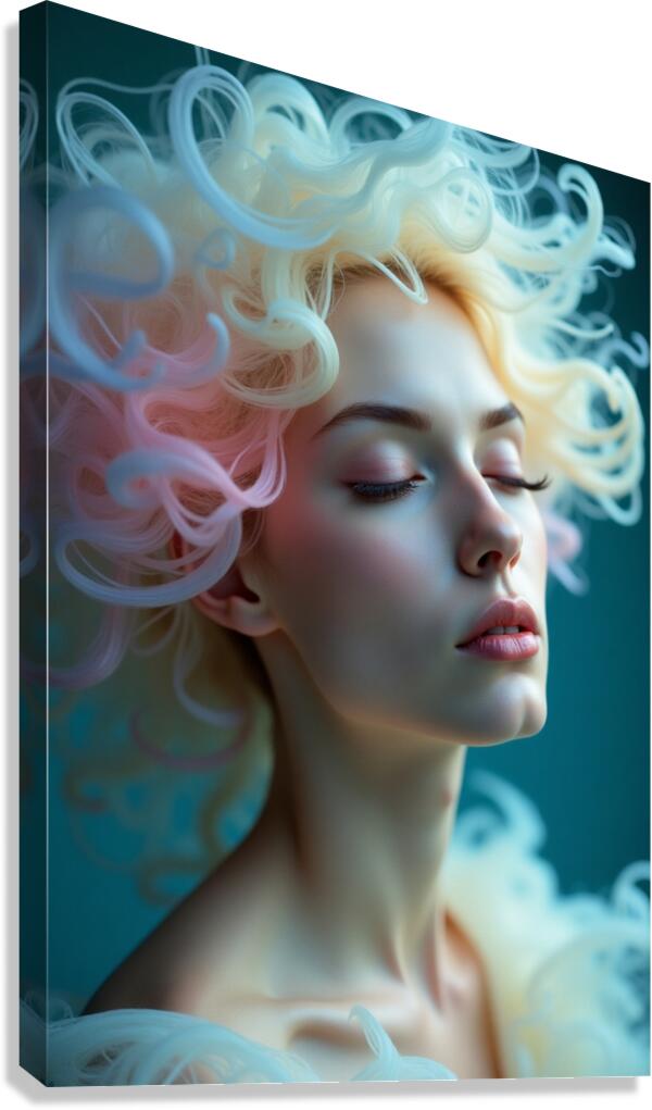 Immerse yourself in serenity and fantasy with Ethereal Bloom, a mesmerizing digital portrait capturing a graceful woman enveloped in soft pastel hues and surreal flowing hair that resembles delicate coral tendrils. The soft light and fluid textures give the piece a celestial, underwater-like ambiance—perfect for creating a calming yet visually captivating space. This dreamlike composition is ideal for lovers of surreal elegance, fantasy portraiture, and modern digital art. Whether hung in a minimalist space or paired with coastal decor, it’s a soothing visual escape that radiates inner peace and quiet beauty.