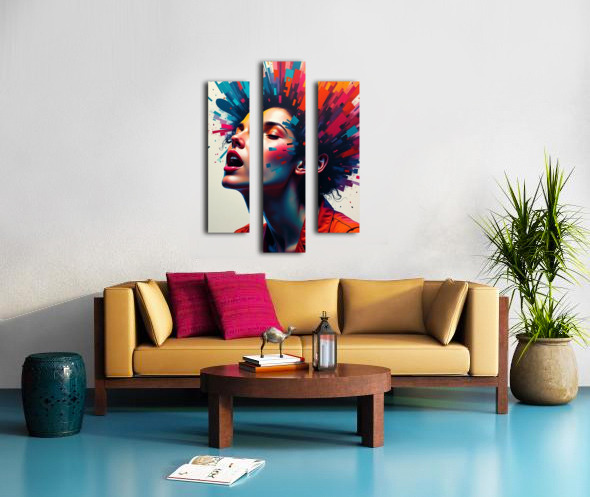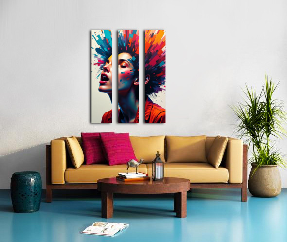 Neon Pulse: Explosive Portrait of Feminine Power & Color Canvas print