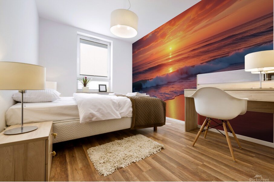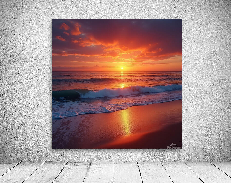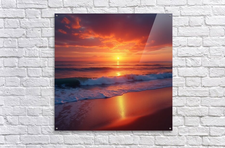 Radiant Ocean Sunset captures a breathtaking moment where the sun kisses the horizon, casting brilliant orange and magenta hues across the sky and sea. Gentle waves shimmer under the fiery glow, creating a peaceful and powerful mood. This artwork embodies warmth, tranquility, and nature’s raw beauty, making it a stunning addition to any living space, beach home, or office. Perfect for lovers of coastal landscapes, sunset chasers, and anyone who finds calm in the rhythm of the ocean.