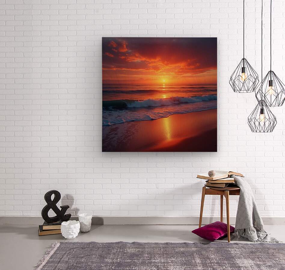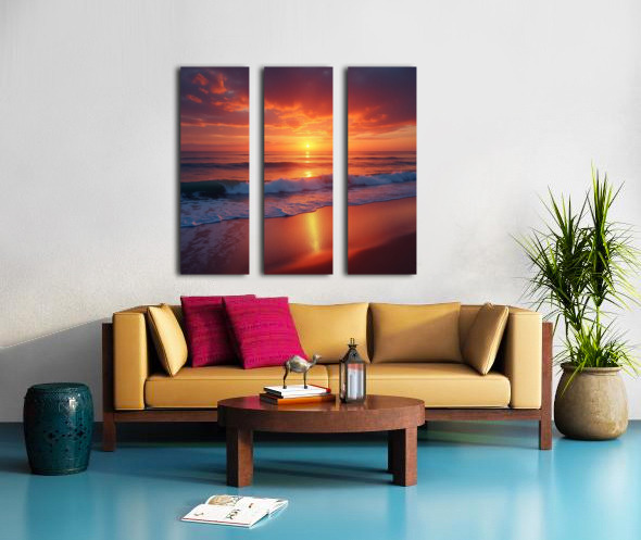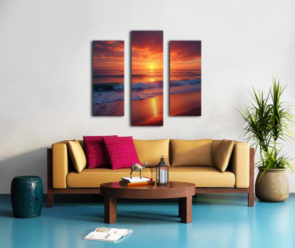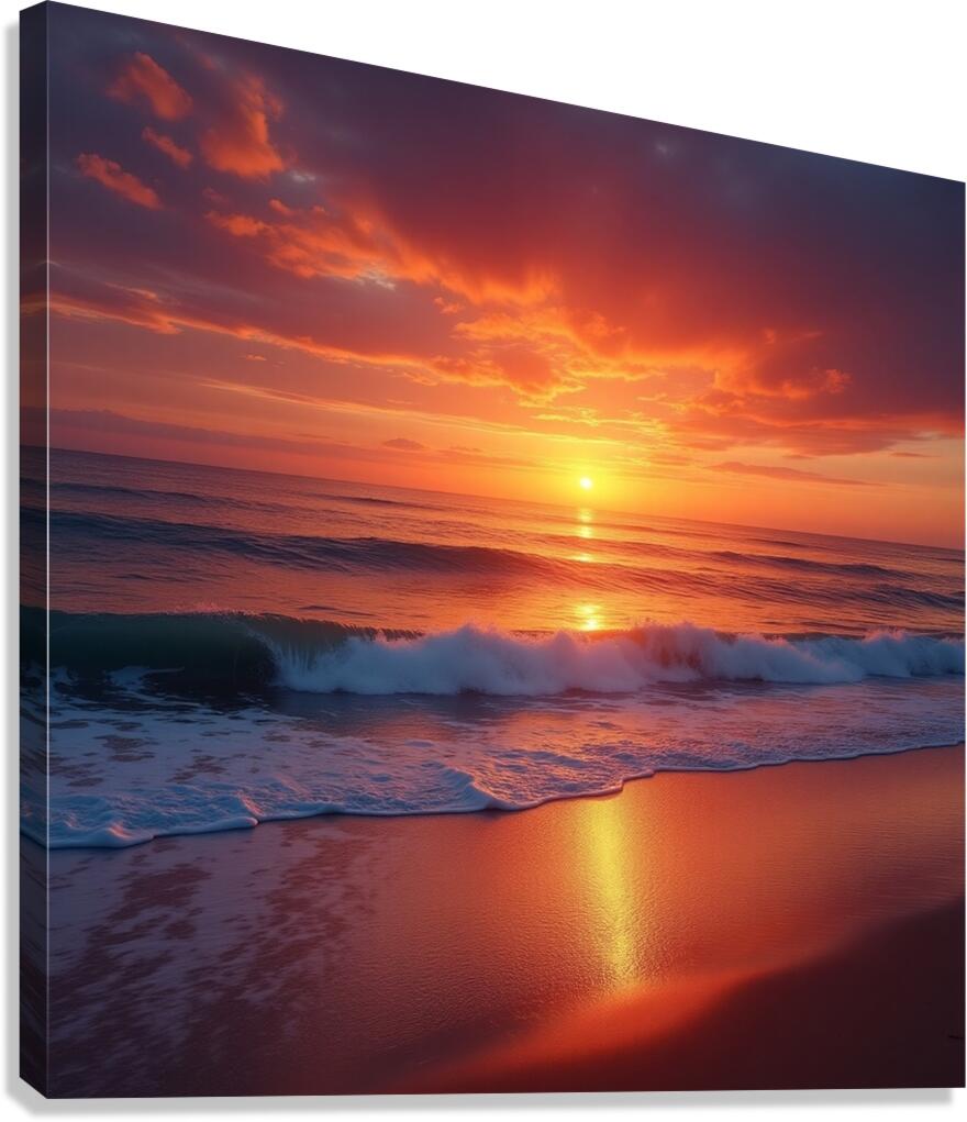 Radiant Ocean Sunset – Serene Waves and Fiery Sky Canvas print