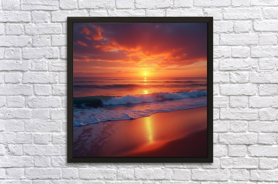 Radiant Ocean Sunset – Serene Waves and Fiery Sky Wall Decor Frame