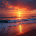 RADIANT OCEAN SUNSET – SERENE WAVES AND FIERY SKY