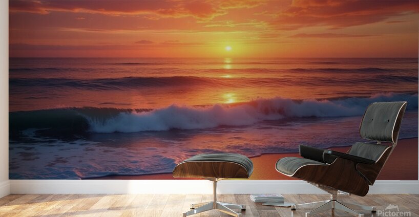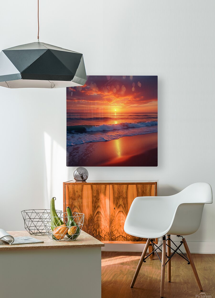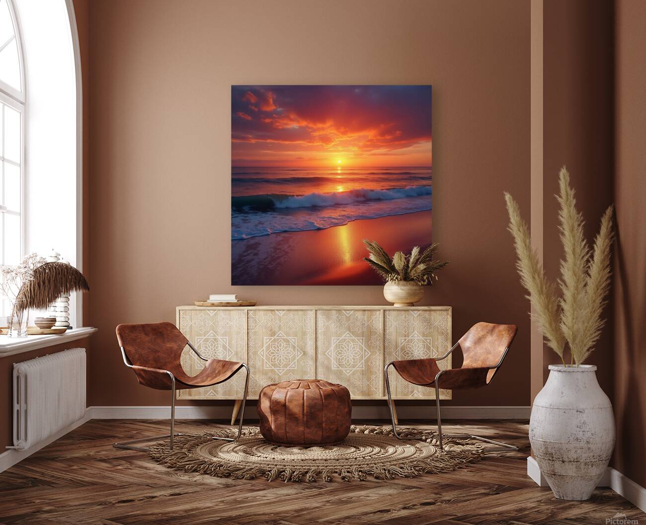ABOUT THIS ARTWORK: RADIANT OCEAN SUNSET – SERENE WAVES AND FIERY SKY