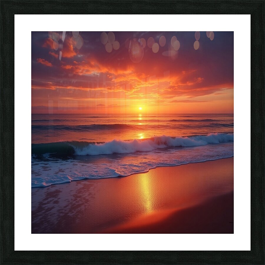 Get this artwork "Radiant Ocean Sunset – Serene Waves and Fiery Sky" in a framed print.