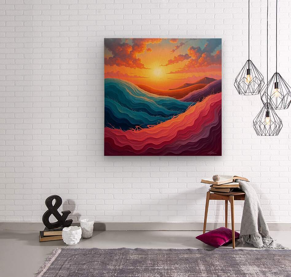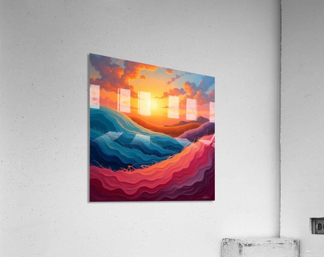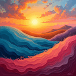 Step into a mesmerizing dream world with this surreal landscape art, where waves of color blend seamlessly into a glowing sunset sky. The vivid swirls...[+]