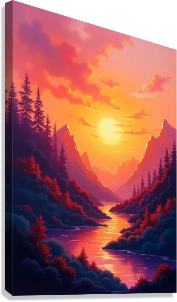 Radiant Wilderness – Sunset River in a Surreal Mountain Valley Canvas print