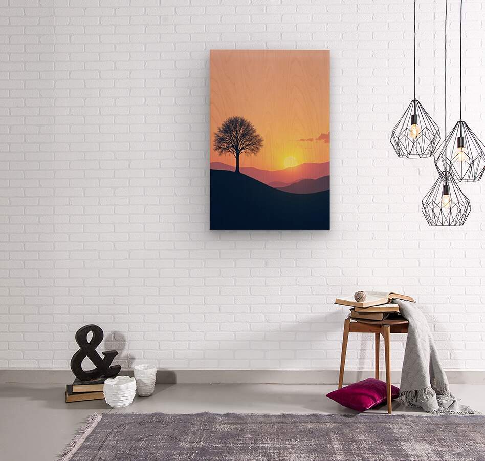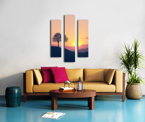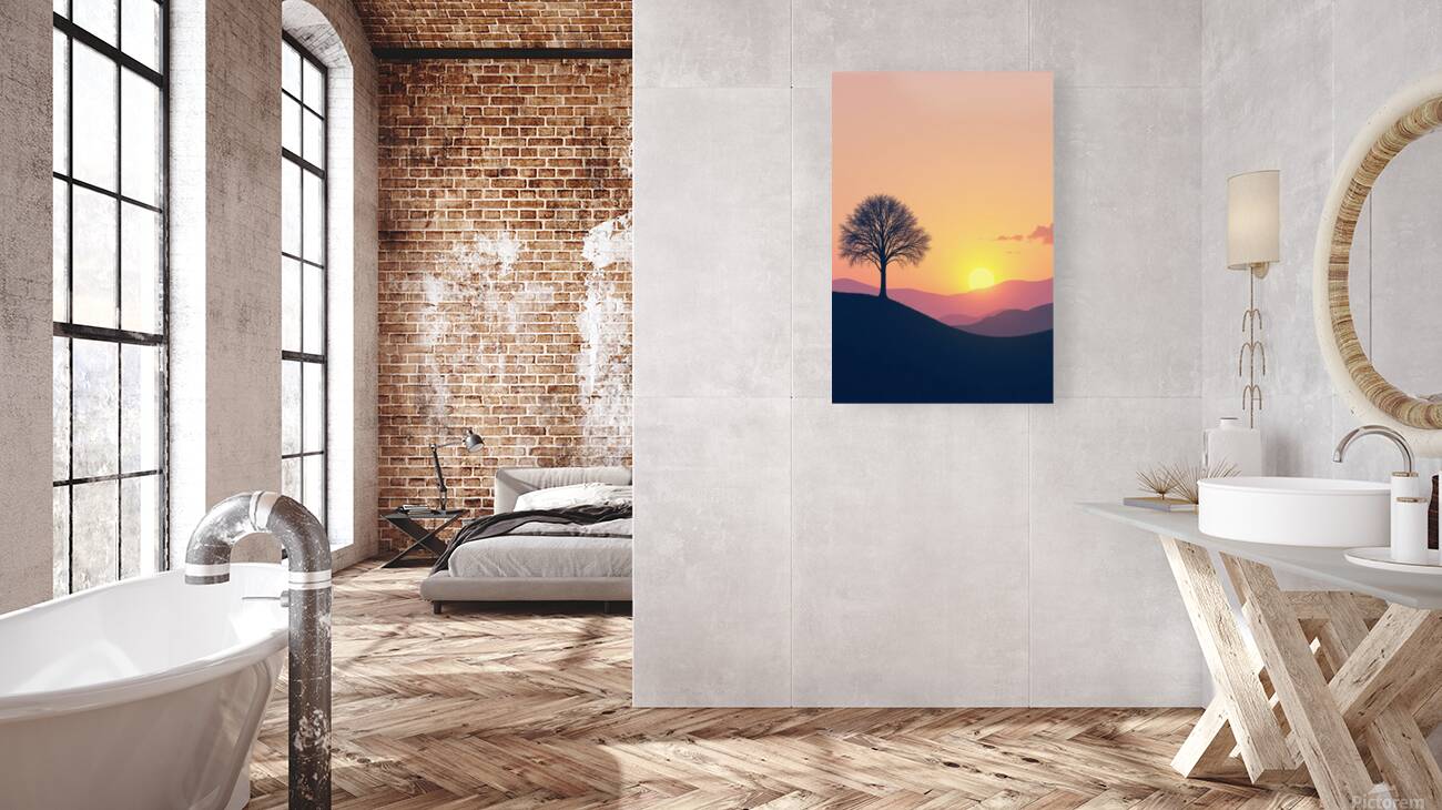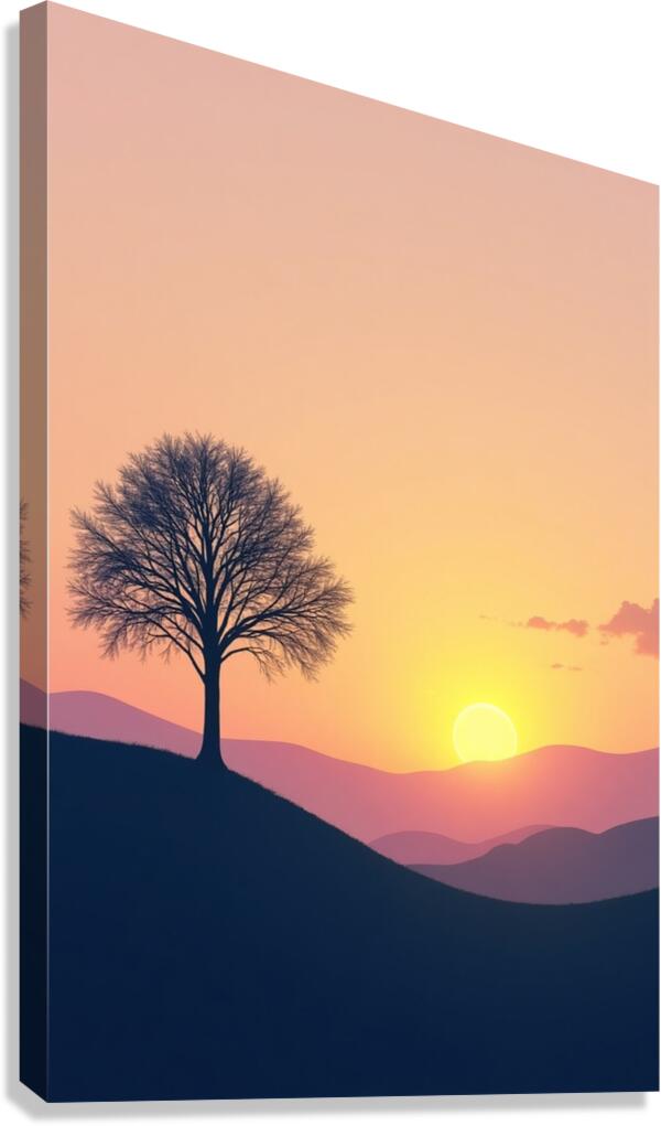 Solitude at Dusk – Minimalist Tree Silhouette Against Sunset Hills Canvas print