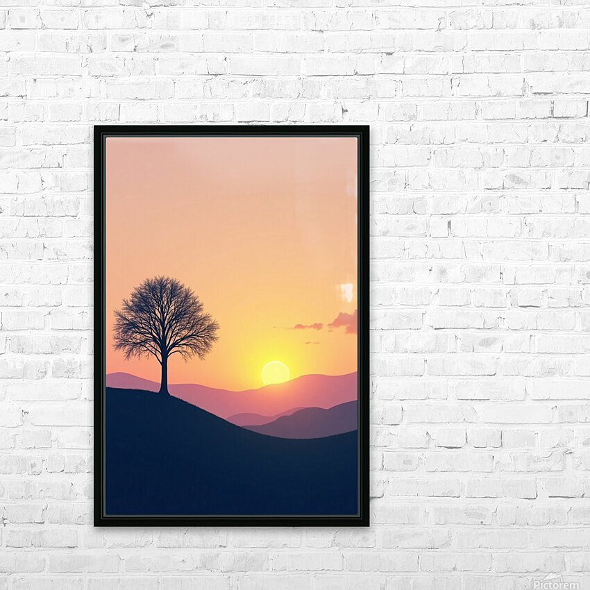 Solitude at Dusk – Minimalist Tree Silhouette Against Sunset Hills Picture Frame Printing