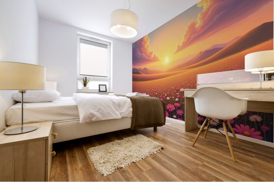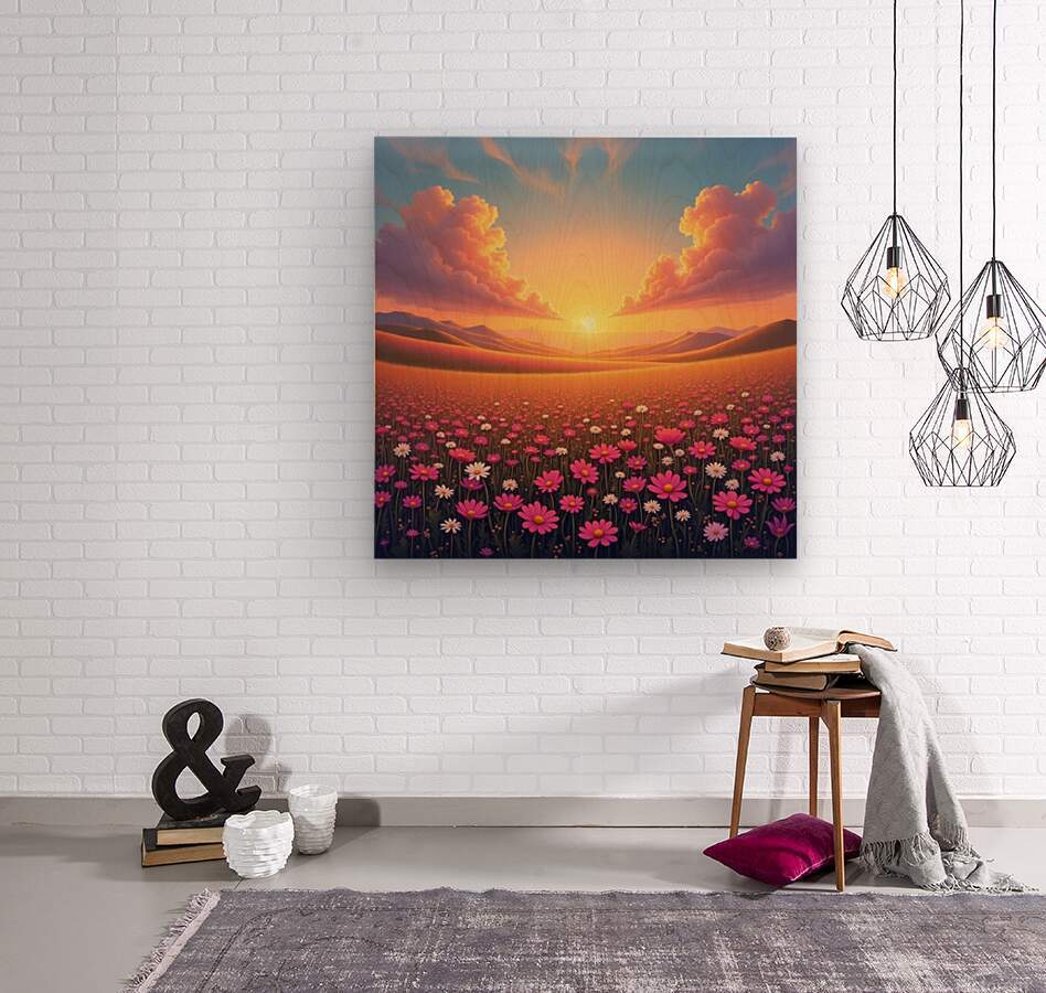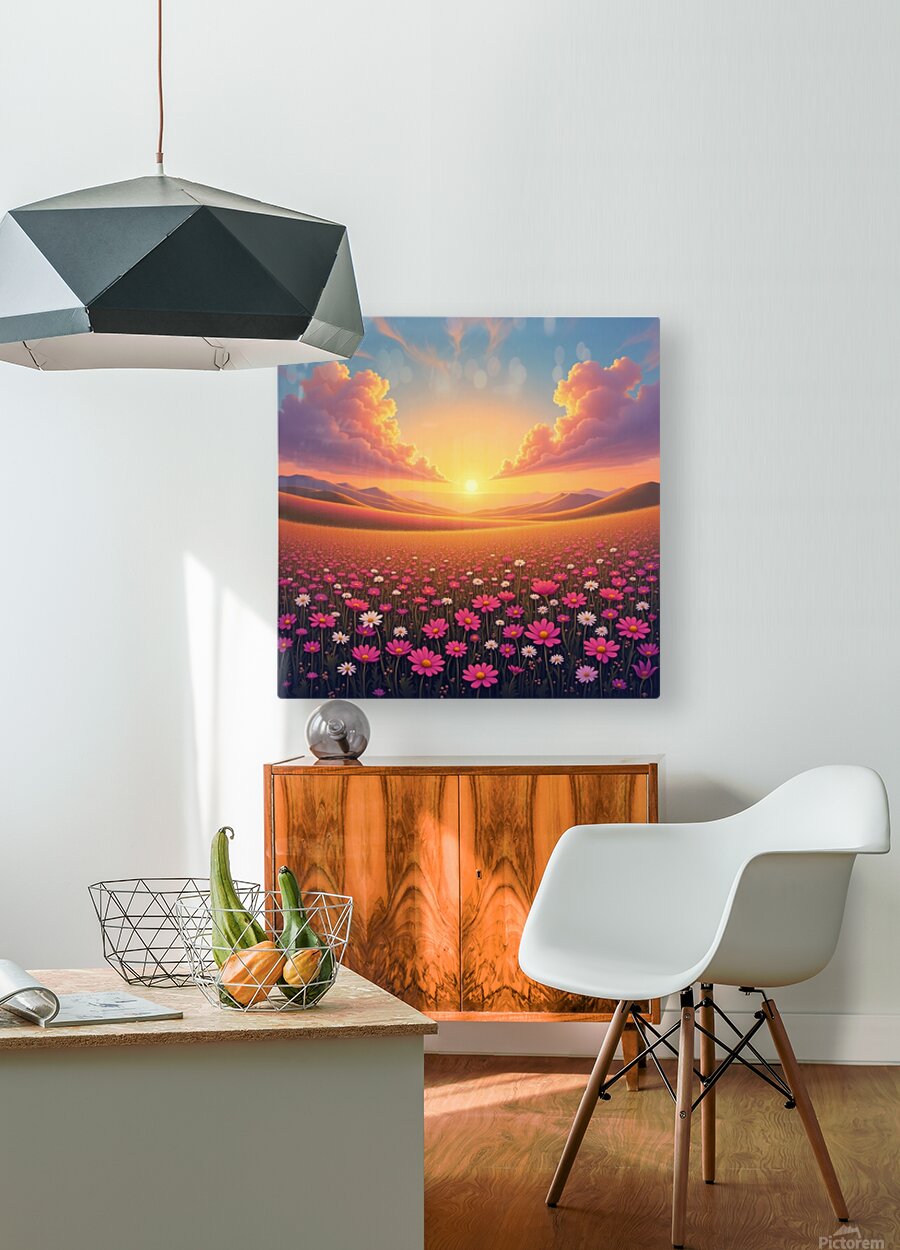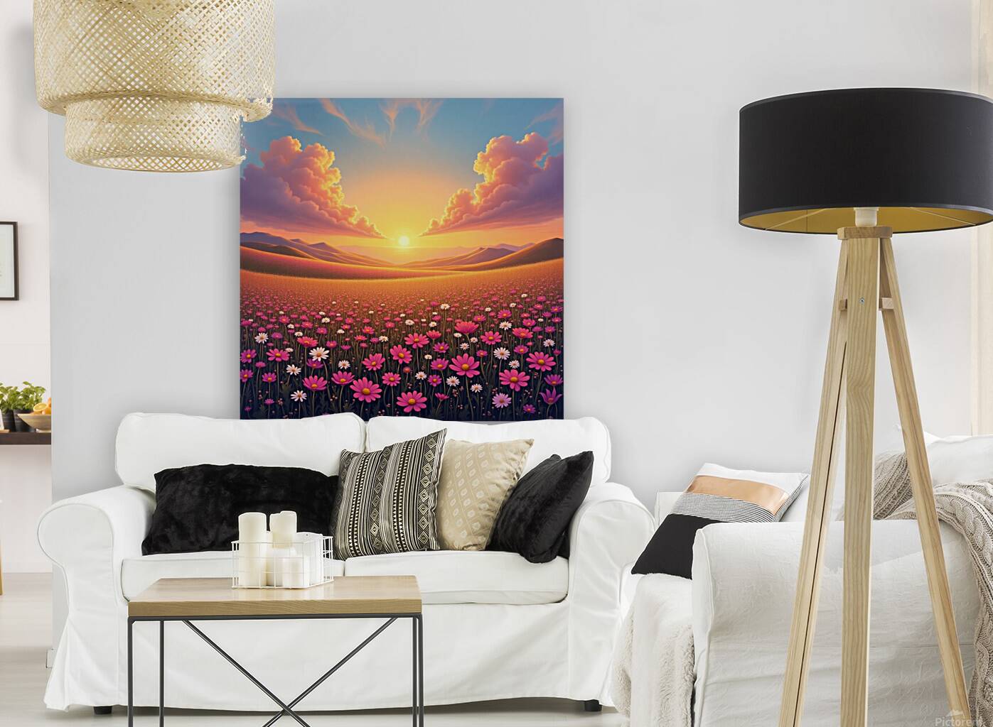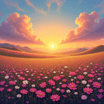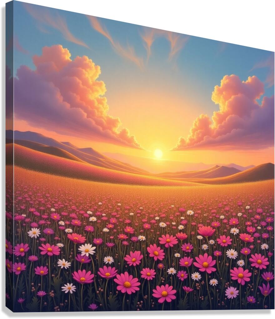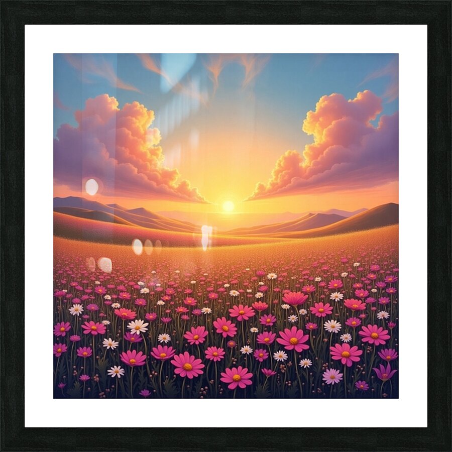Get this artwork "Golden Bloom – Sunset Over a Field of Wildflowers" in a framed print.