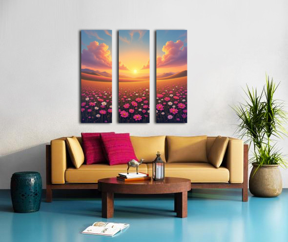 Golden Bloom – Sunset Over a Field of Wildflowers Canvas print