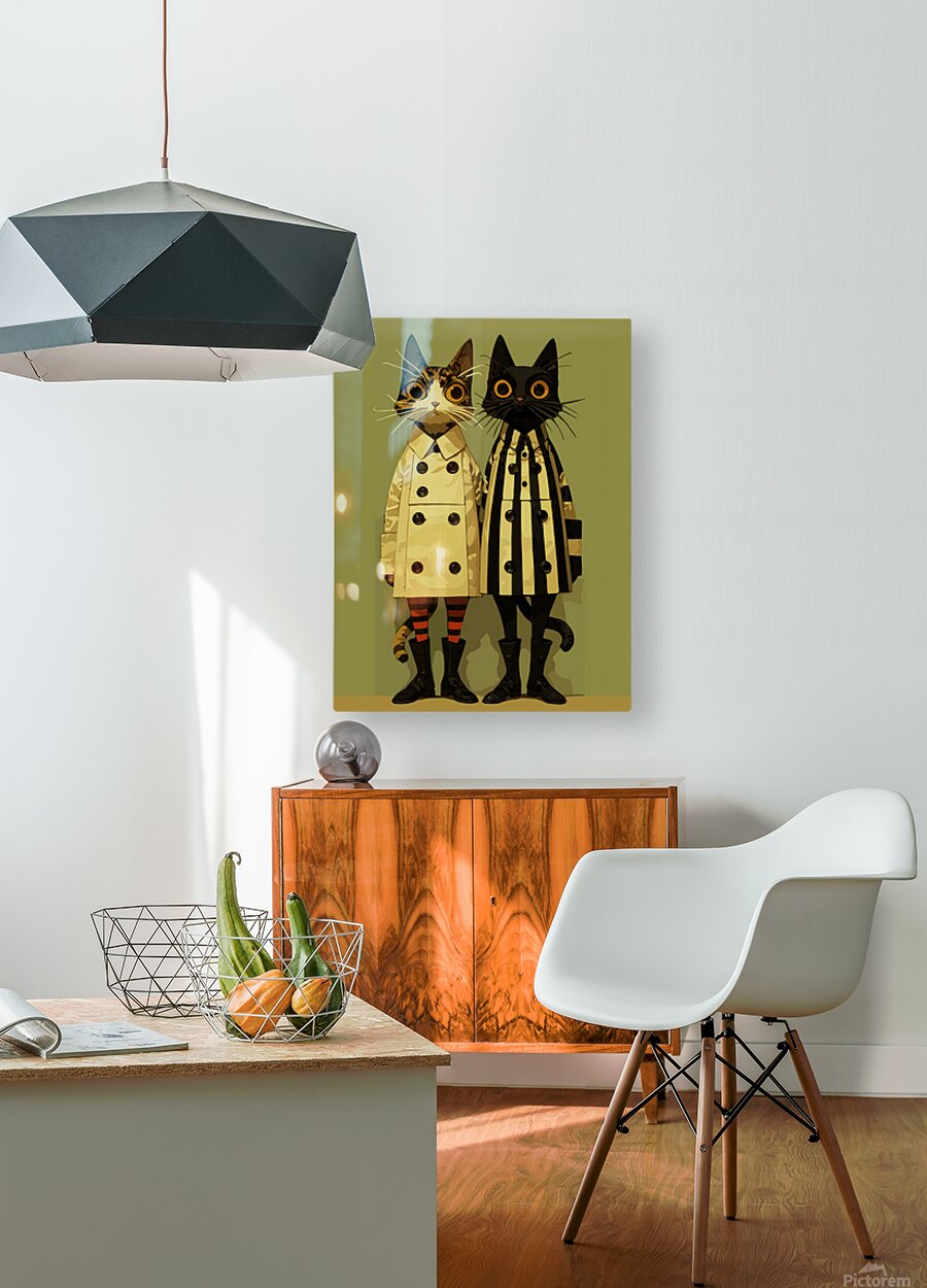 Bring a playful twist to your home with “Fashion Felines,” a charming wall art design featuring two wide-eyed cats dressed to impress! With their oversized trench coats, big boots, and fashion-week attitude, this duo blends elegance with quirky humor—making it the perfect decor for cat lovers with a taste for the whimsical. From kids’ rooms to stylish living spaces or even vet clinics and cafes, this art piece is sure to be a conversation starter. High-resolution design ideal for art prints, posters, canvas Great gift for cat moms, pet owners, or feline fashionistas Perfect for nurseries, hallways, studios, or quirky decor themes Funny cat wall art with two stylish cats in trench coats and boots. Perfect for cat lovers and whimsical home decor fans.