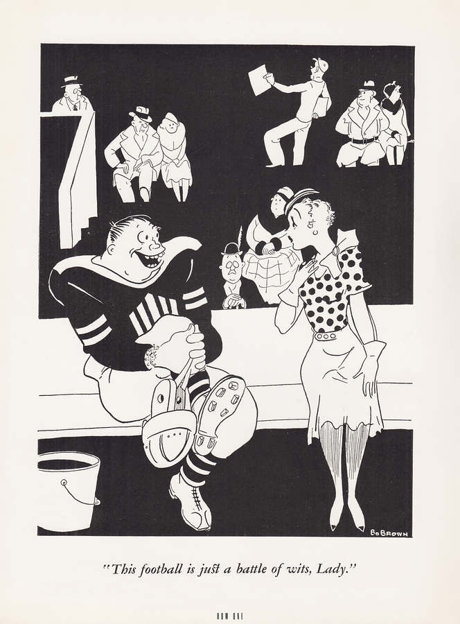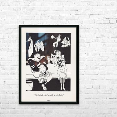 1934 Bo Brown Football Cartoon Art | "This Football is Just a Battle of Wits, Lady." | Row One | Over 18,000 Historic Sports Prints