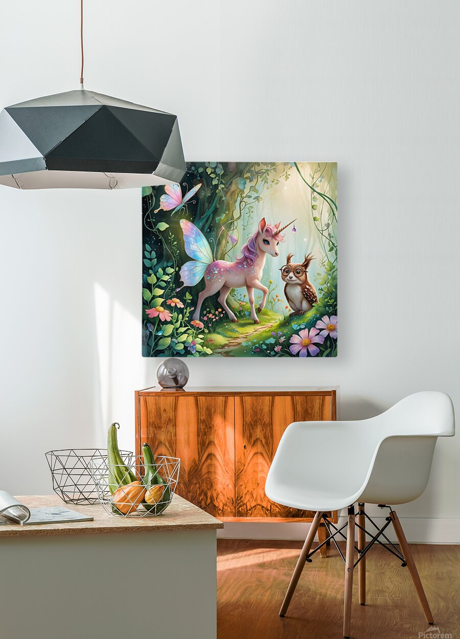 Unicorn Owl and Butterfly  HD Metal print with Floating Frame on Back