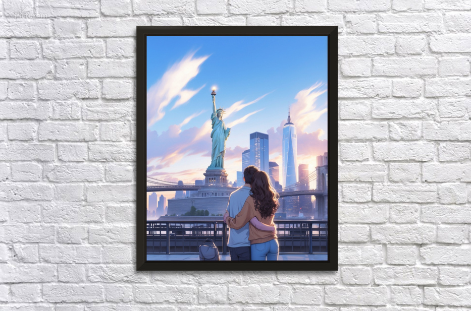 Couple in New York illustration Wall Decor Frame
