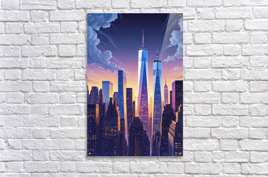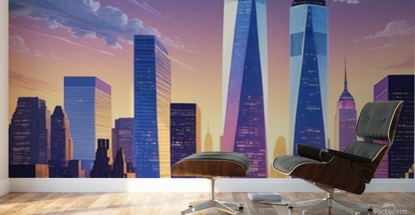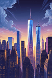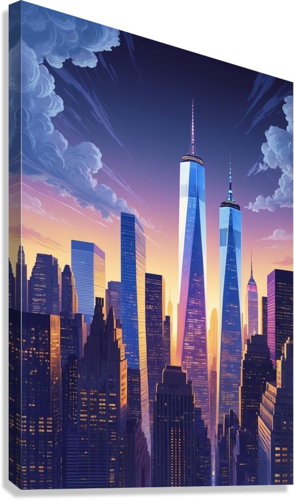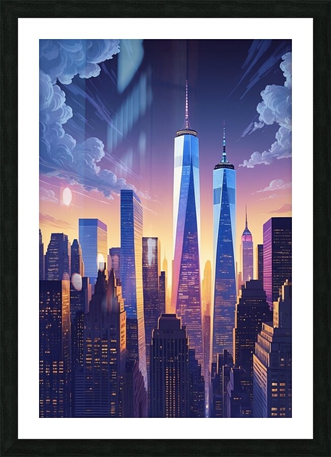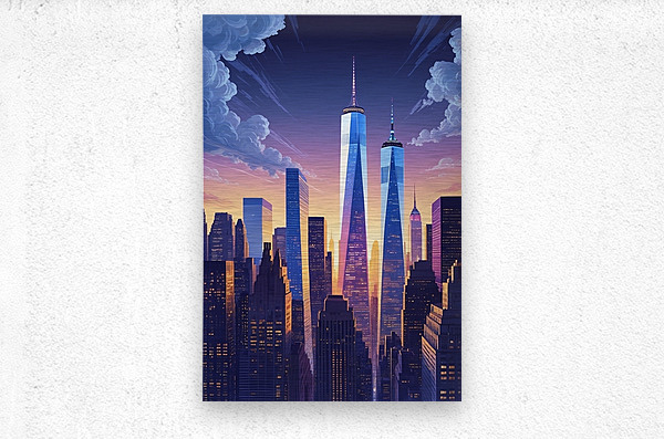 A striking skyline at dusk with twin towers shining against a painterly sky. The balance of futuristic architecture and dreamy lighting evokes the awe...[+]