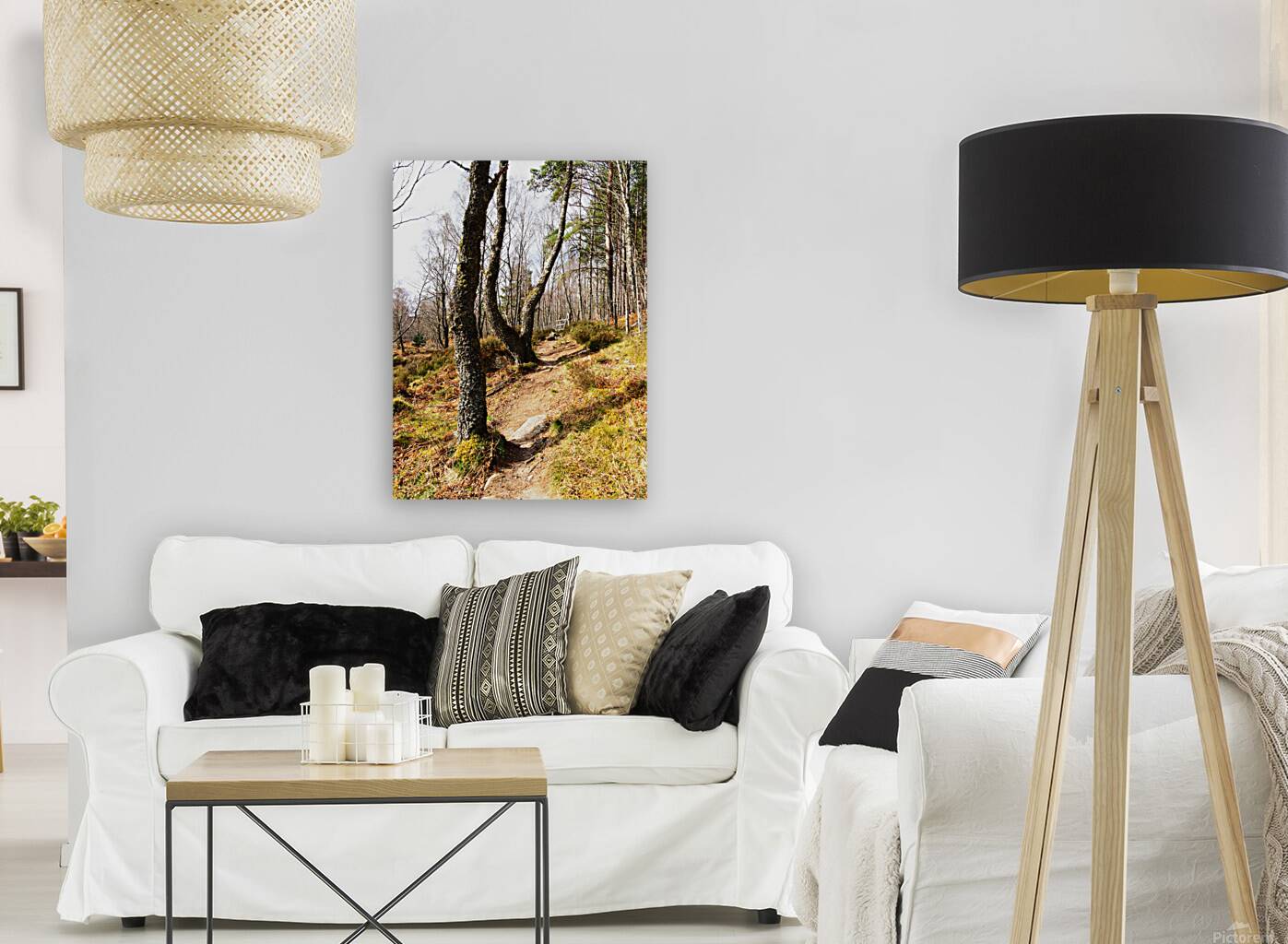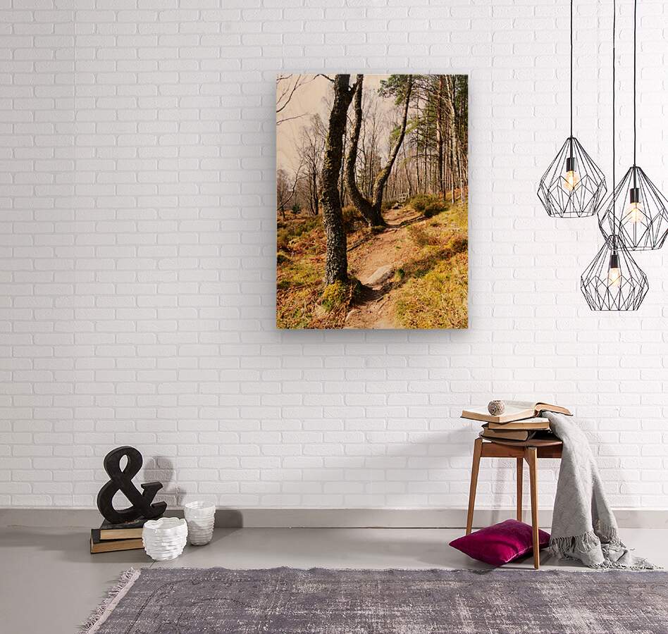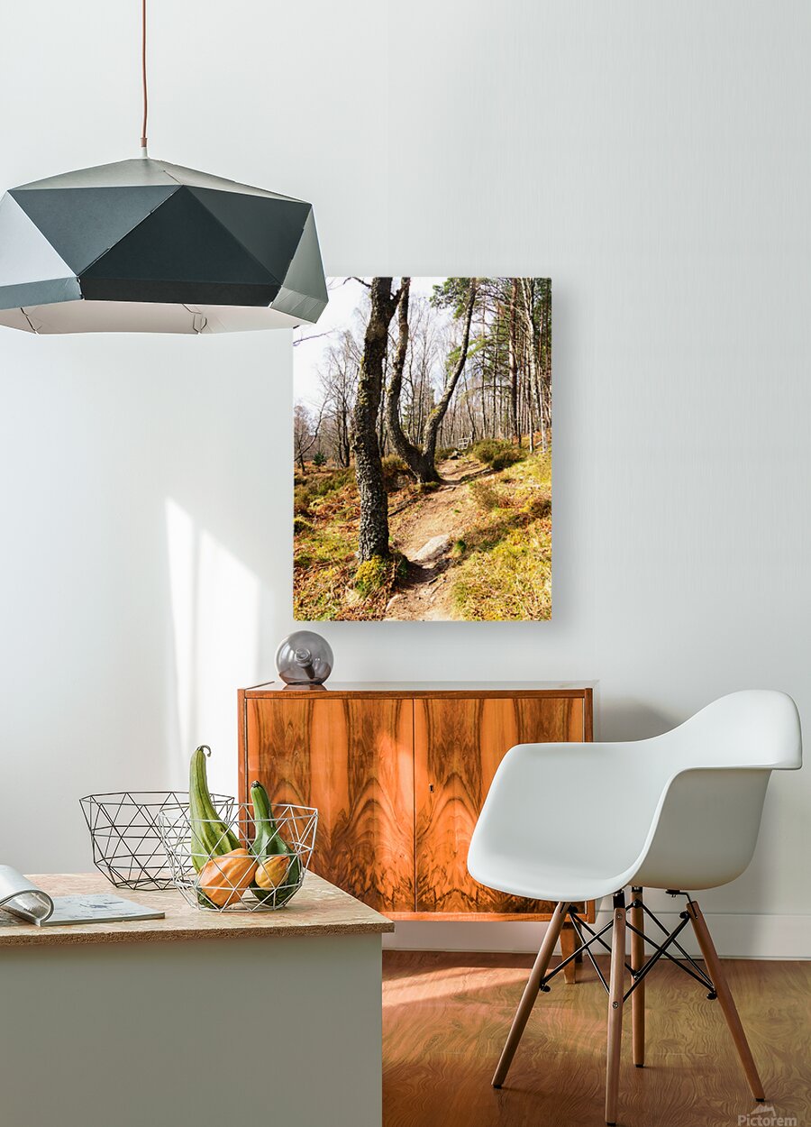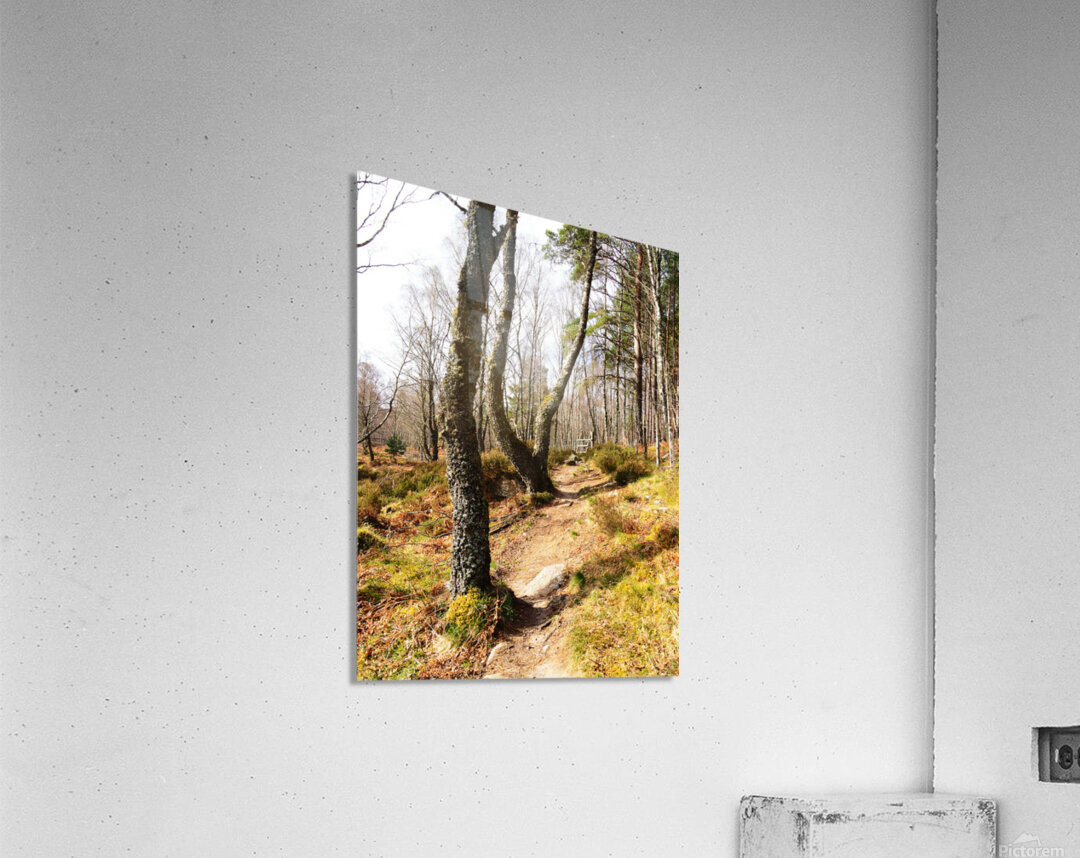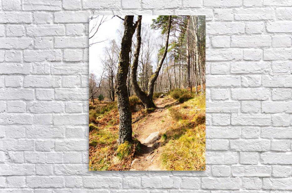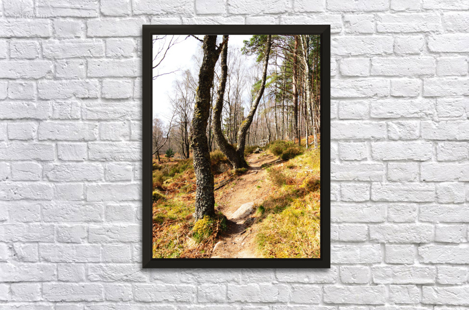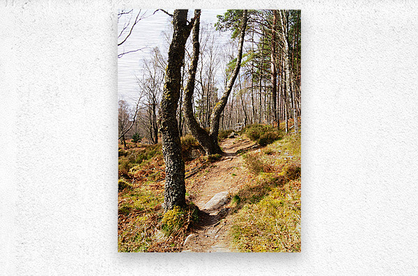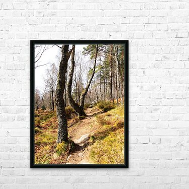 I took this photo during a lovely nature walk through the Scottish Highlands. Features a winding dirt path meandering through a woodland area, surroun...[+]