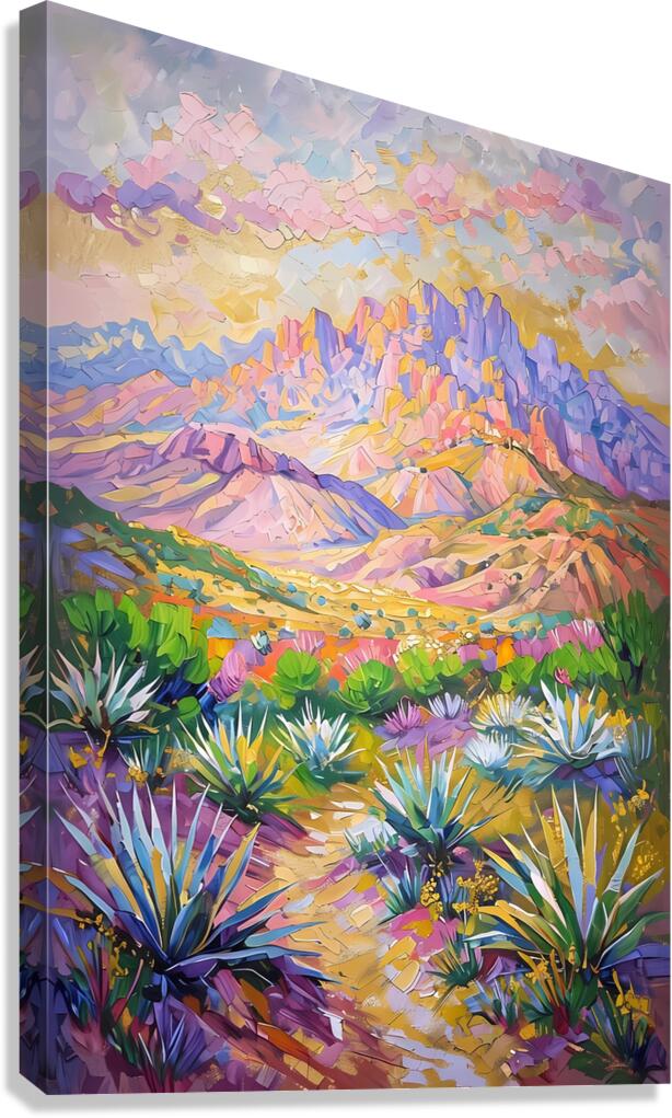 SOUTHWEST SUNSET – SANDIA MOUNTAINS & YUCCA DESERT LANDSCAPE ART SHOP ARTIST  Canvas Print