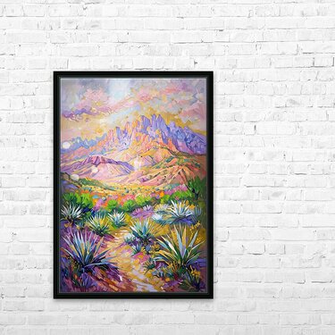 ABOUT THIS ARTWORK: SOUTHWEST SUNSET – SANDIA MOUNTAINS & YUCCA DESERT LANDSCAPE ART