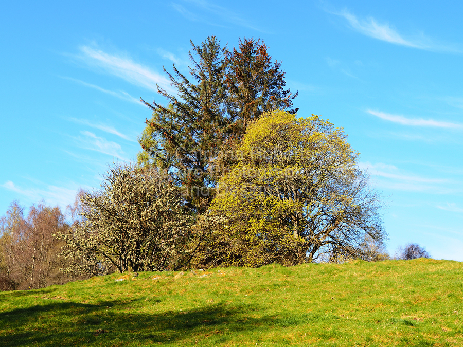 I took this photo during a lovely Spring nature walk through the Scottish Highlands. Features a variety of trees standing together on a grassy hill u...[+]