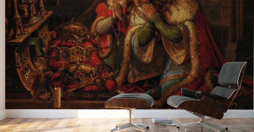 King Albert II and His Wife Elizabeth of Luxembourg in Prayer. On the Altar the Crowns of Bohemia and Hungary. As well as the Imperial Crown of the Holy Roman Empire [1820] by Karl Russ [1779–1843] Canvas print