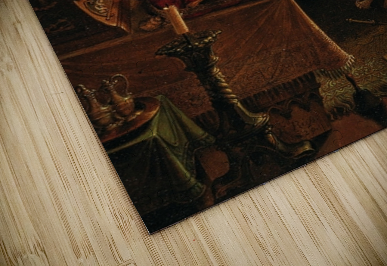 King Albert II and His Wife Elizabeth of Luxembourg in Prayer. On the Altar the Crowns of Bohemia and Hungary. As well as the Imperial Crown of the Holy Roman Empire [1820] by Karl Russ [1779–1843] MyCozyFineArt Puzzle printing