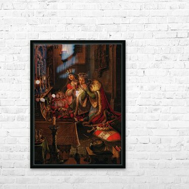 King Albert II and His Wife Elizabeth of Luxembourg in Prayer. On the Altar the Crowns of Bohemia and Hungary. As well as the Imperial Crown of the Holy Roman Empire [1820] by Karl Russ [1779–1843] Picture Frame Printing