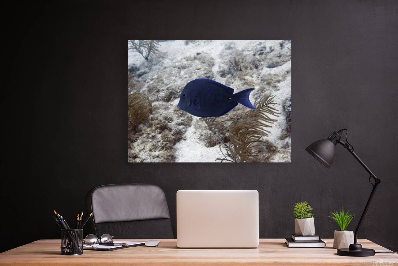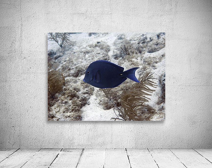 A dark blue fish swims by. Produced specifically by DeepEarth Photography for use in the hospitality industry. No warranties are stated or implied. Cr...[+]