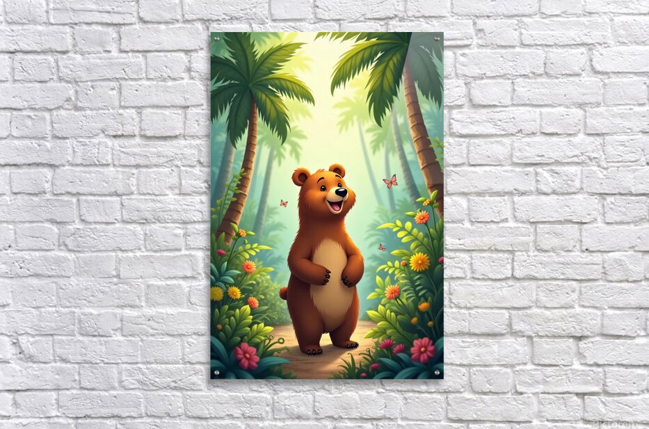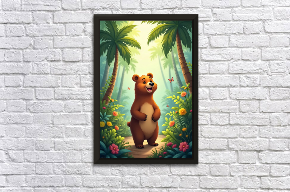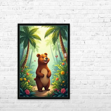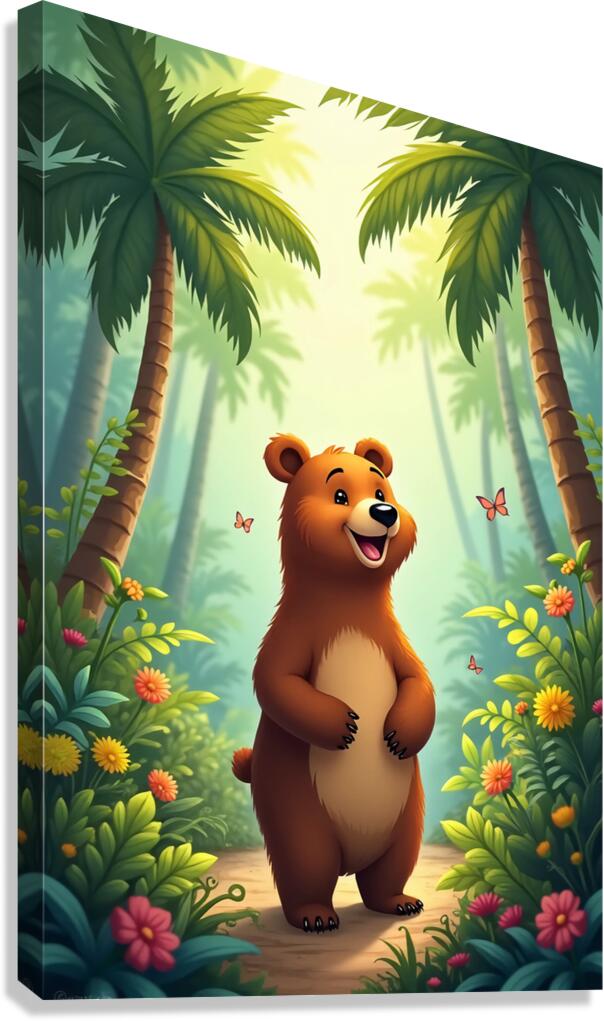 Bring the joy of the tropics indoors with our adorable "Happy Jungle Bear" wall art! This vibrant piece features a "cute cartoon bear" amidst "lush tropical foliage," including swaying "palm trees" and colorful "jungle flowers." The "smiling bear" and fluttering "butterflies" create a "cheerful and playful" atmosphere, perfect for a "kids' room decor" or anyone who loves "whimsical animal art." Add a touch of "tropical paradise" to your walls with this "charming bear print" and explore our collection of "jungle themed art" for more delightful designs.