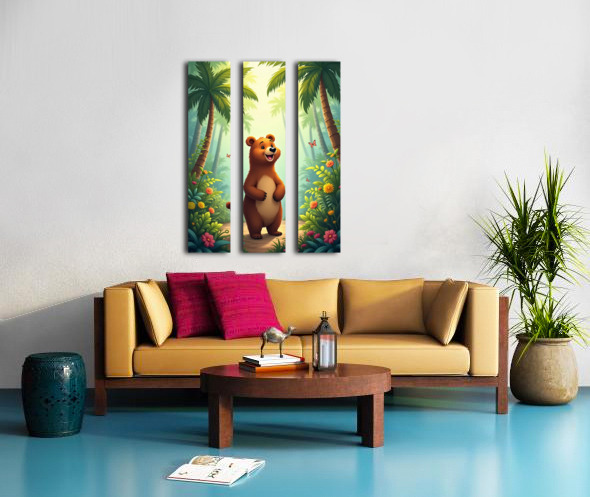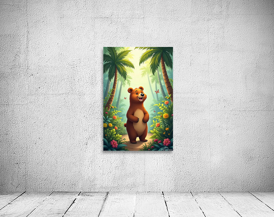 Bring the joy of the tropics indoors with our adorable "Happy Jungle Bear" wall art! This vibrant piece features a "cute cartoon bear" amidst "lush tr...[+]