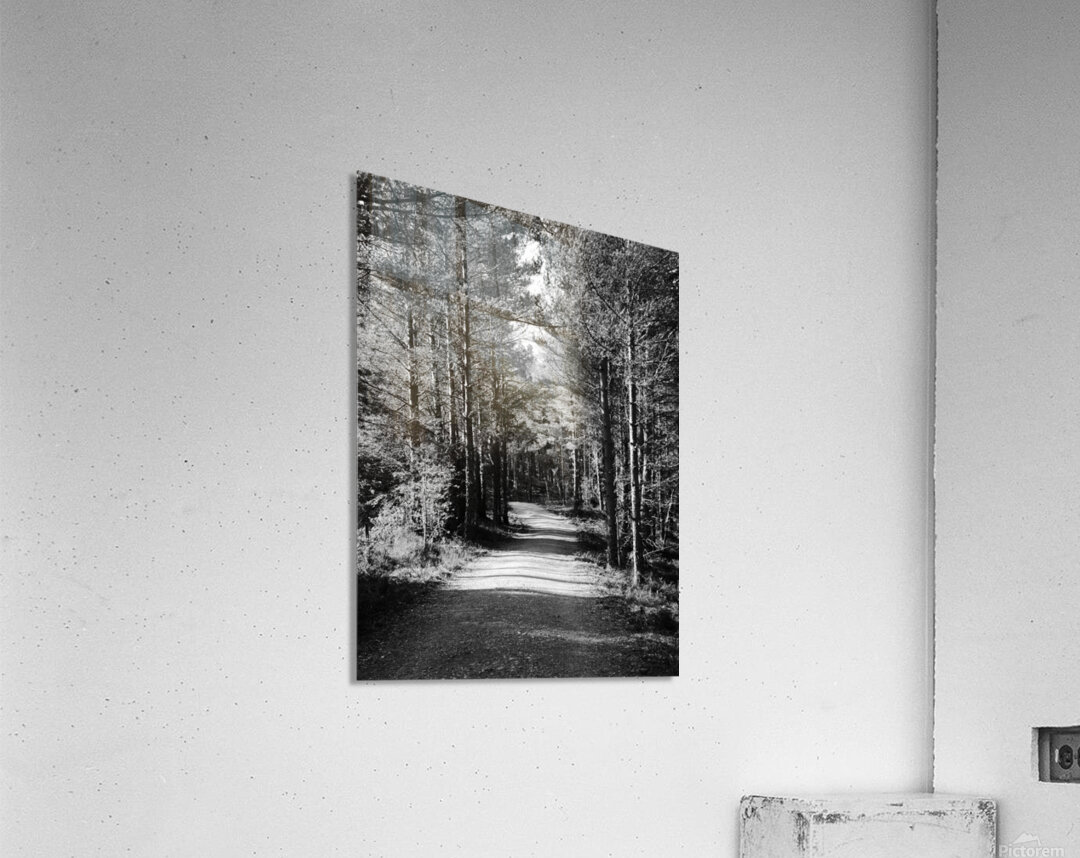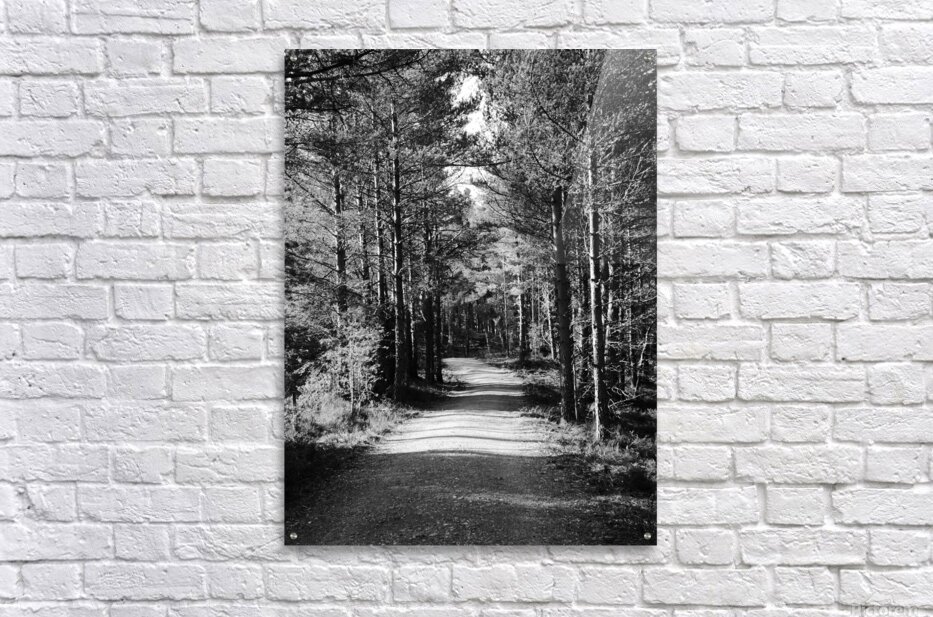 ABOUT THIS ARTWORK: SCOTTISH HIGHLANDS FOREST PATH IN BLACK AND WHITE
