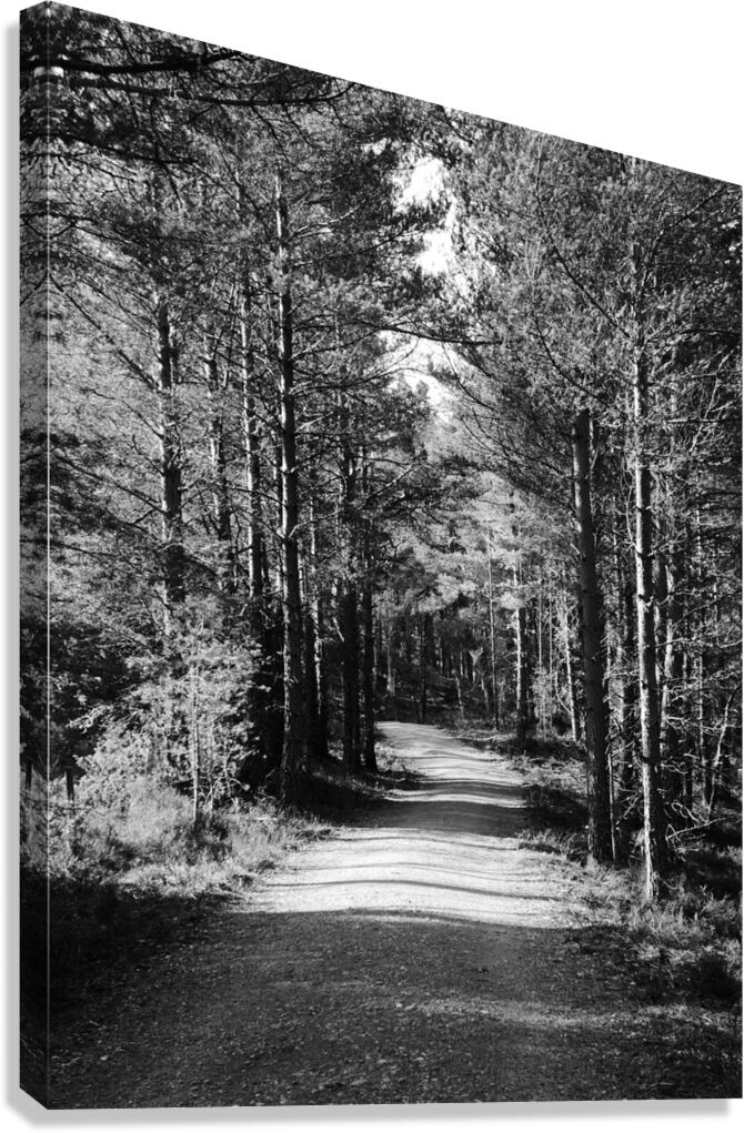 SCOTTISH HIGHLANDS FOREST PATH IN BLACK AND WHITE CATRIONA ROBERTS NATURE PHOTOGRAPHY AND DESIGNS  Canvas Print
