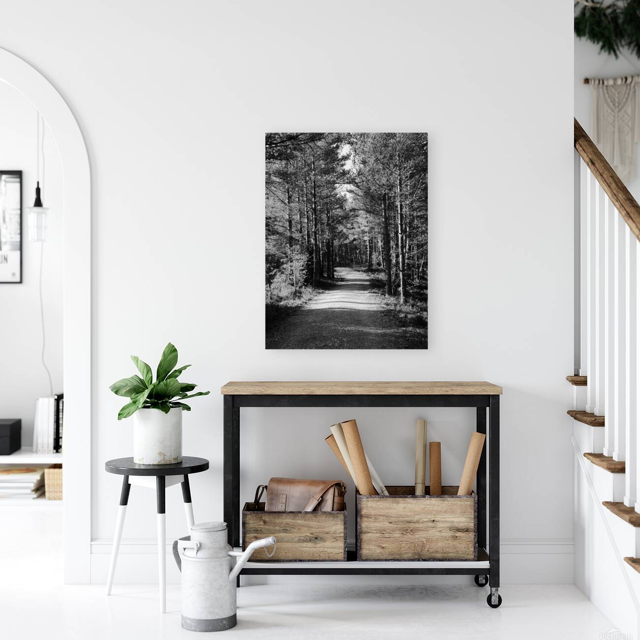 Scottish Highlands Forest Path in Black and White Canvas print
