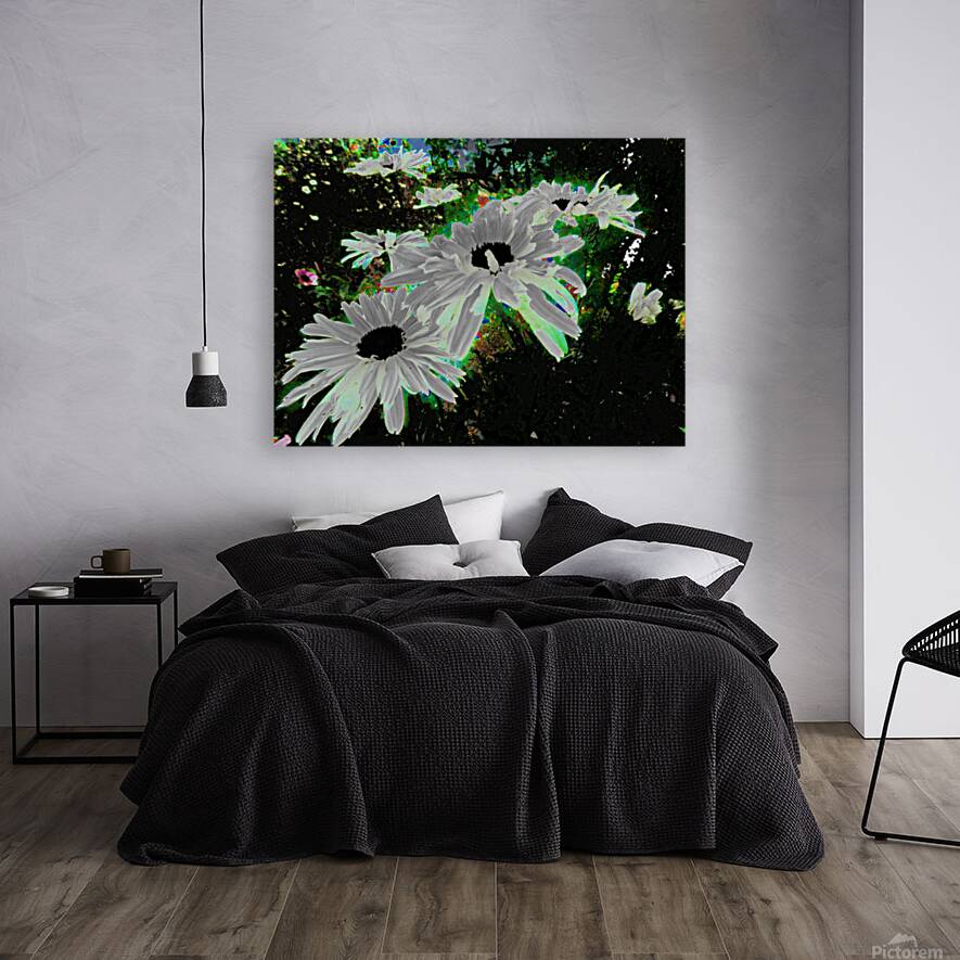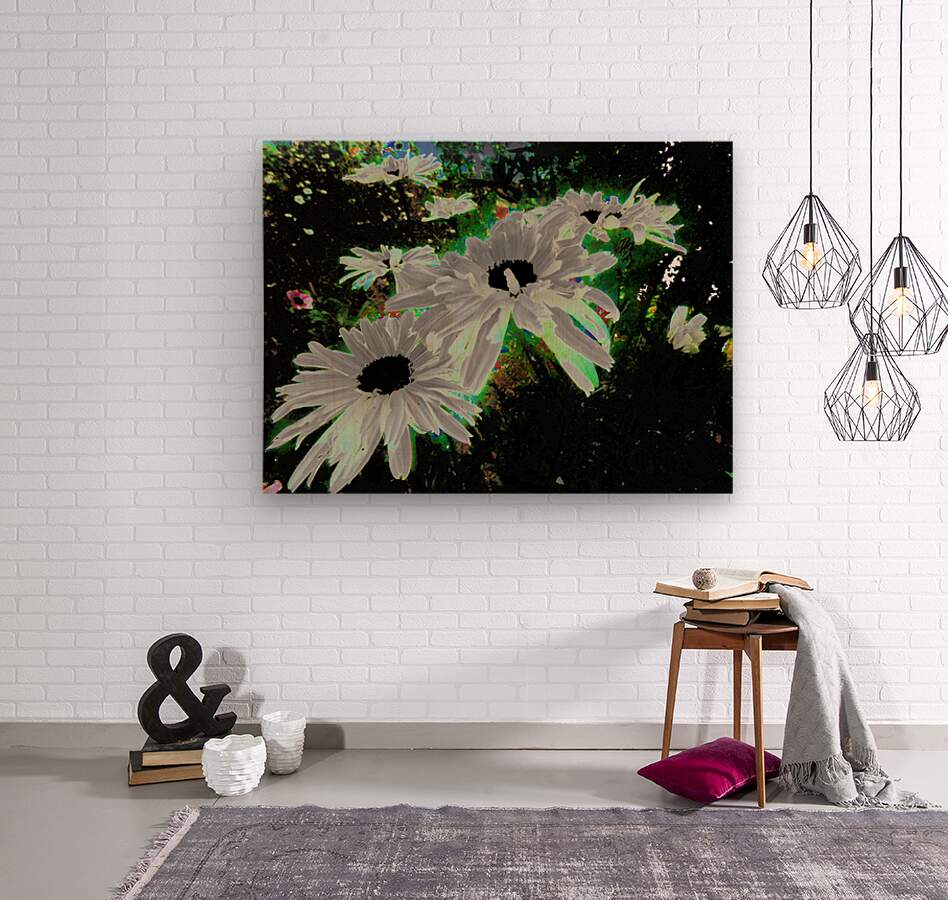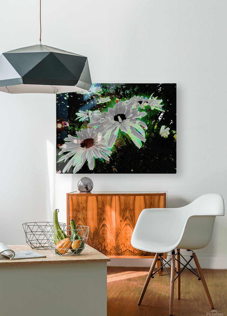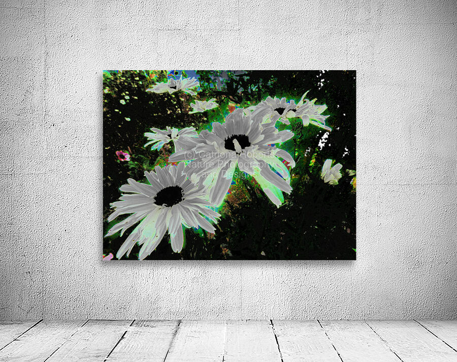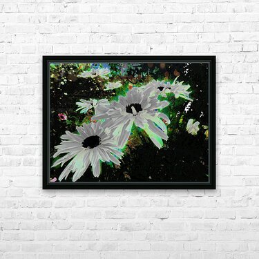 Originally a coloured photo laterally digitally manipulated to create a stunning piece of contemporary floral art. Features a cluster of Daisies with ...[+]