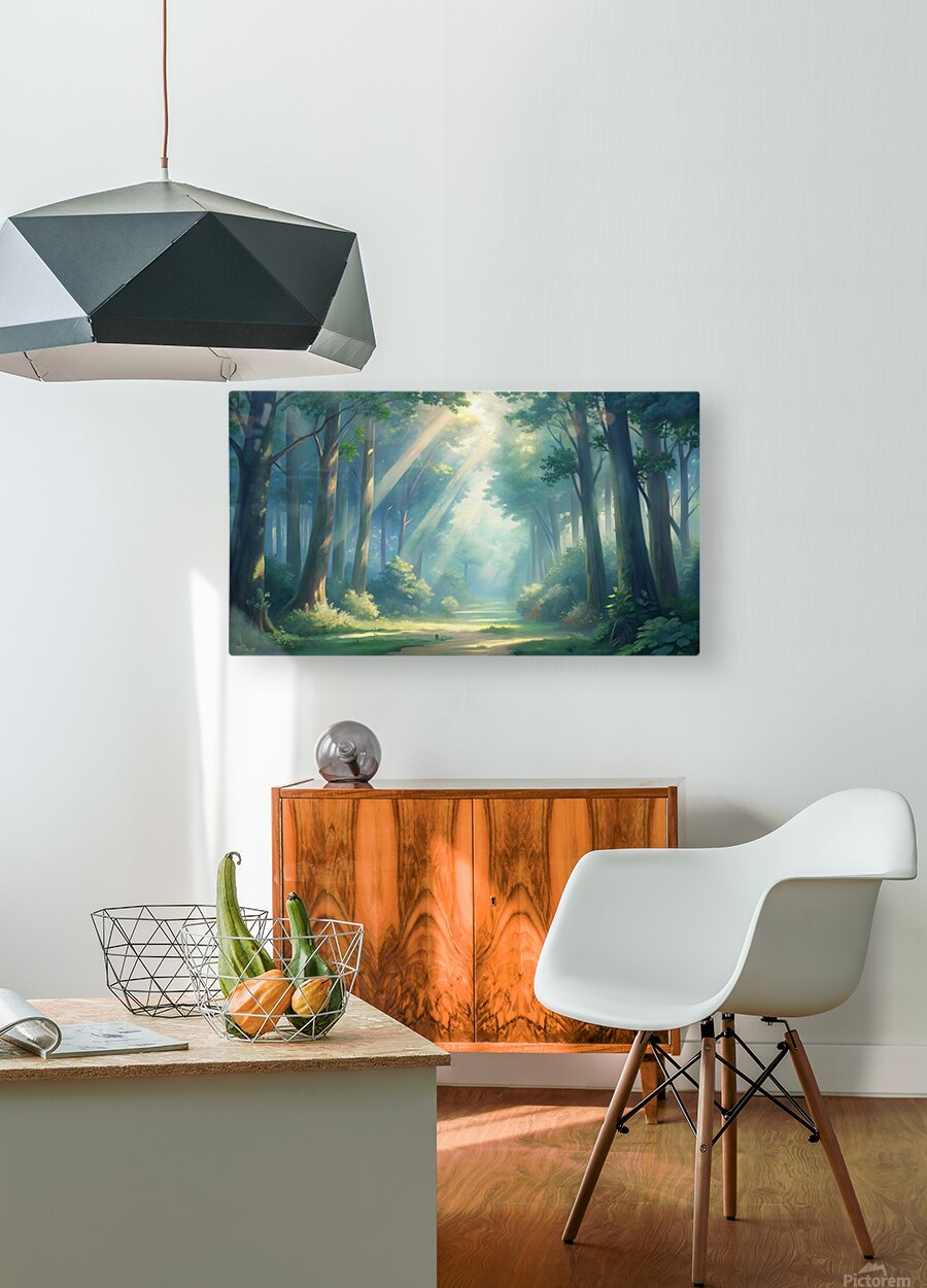 Clearing of Inspiration is a serene watercolor artwork that invites viewers into a tranquil forest clearing bathed in soft, dappled sunlight. This piece captures the essence of peace, clarity, and the creative spark that nature provides. Printed on a sleek metal panel, the watercolor’s gentle hues and metallic shine add depth and dimension, making this a captivating addition to any space. Clearing of Inspiration serves as a gentle reminder of the calm and inspiration found in nature’s quiet moments.