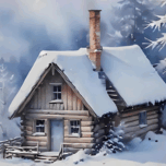ABOUT THIS ARTWORK: SNOWY CABIN IN WINTER FOREST – COZY CHRISTMAS ART PRINT