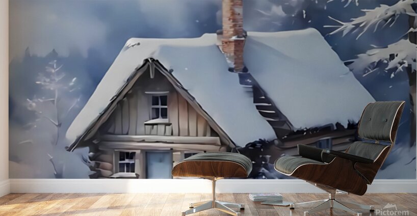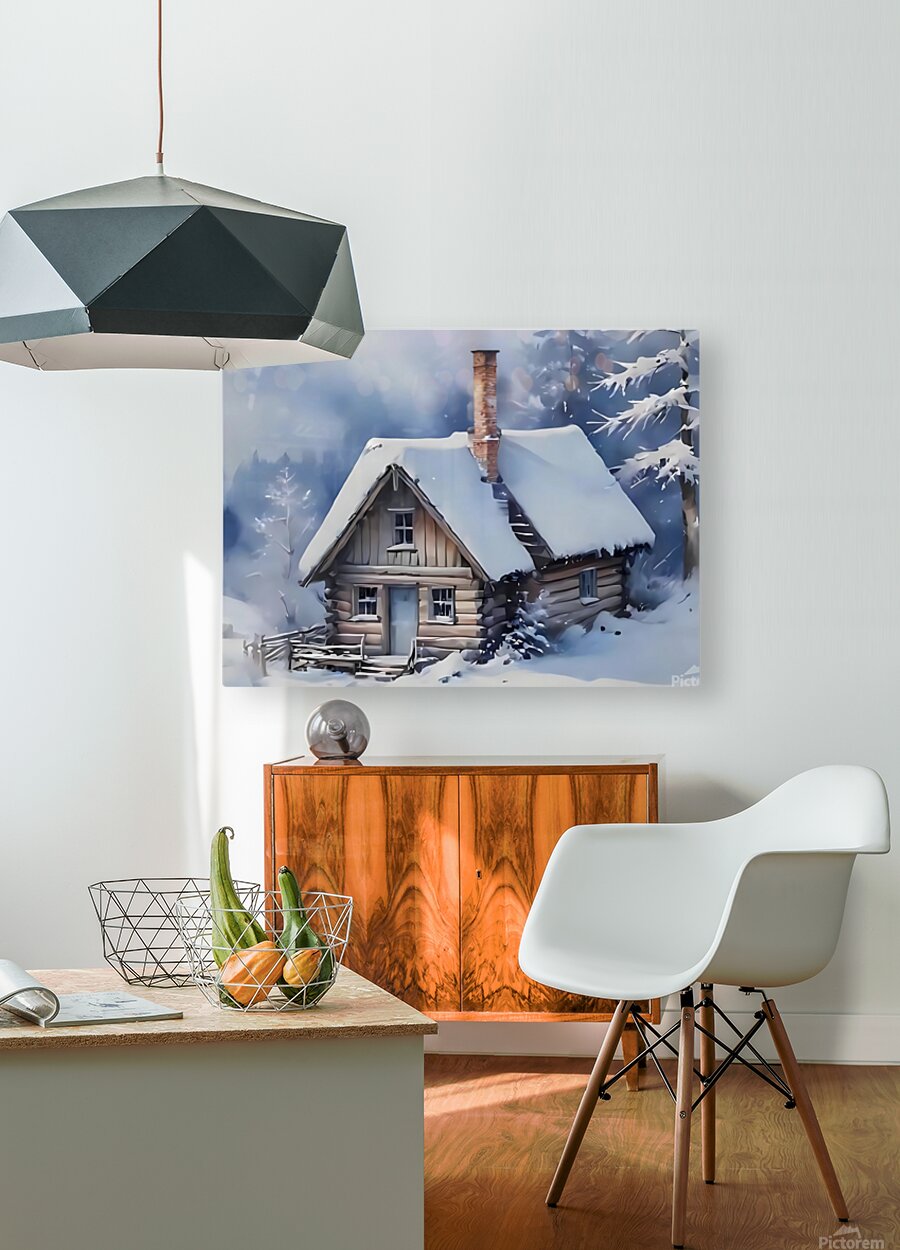 Snowy Cabin in Winter Forest – Cozy Christmas Art Print Picture Frame Printing