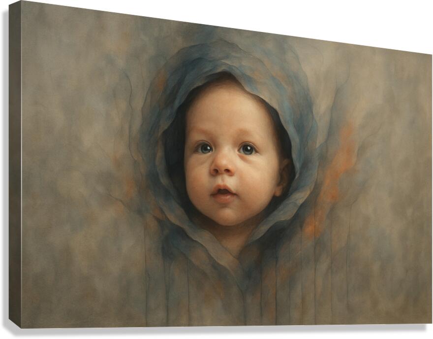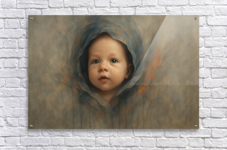 At the heart of a whirlwind of elusive colors and shapes, a child’s face emerges—fragile yet radiant. Soft features pierce through the surrounding abstraction, like a promise of life amidst chaos. Fleeting textures, bursts of light, and vibrant hues seem to align around their curious gaze, a symbol of hope and purity. This captivating piece blends the chaotic motion of abstract art with the timeless delicacy of childhood, inviting viewers to seek harmony hidden within apparent confusion. A visual metaphor for beauty born from the unexpected.