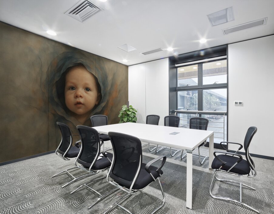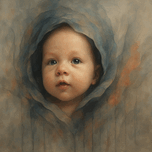 At the heart of a whirlwind of elusive colors and shapes, a child’s face emerges—fragile yet radiant. Soft features pierce through the surrounding...[+]