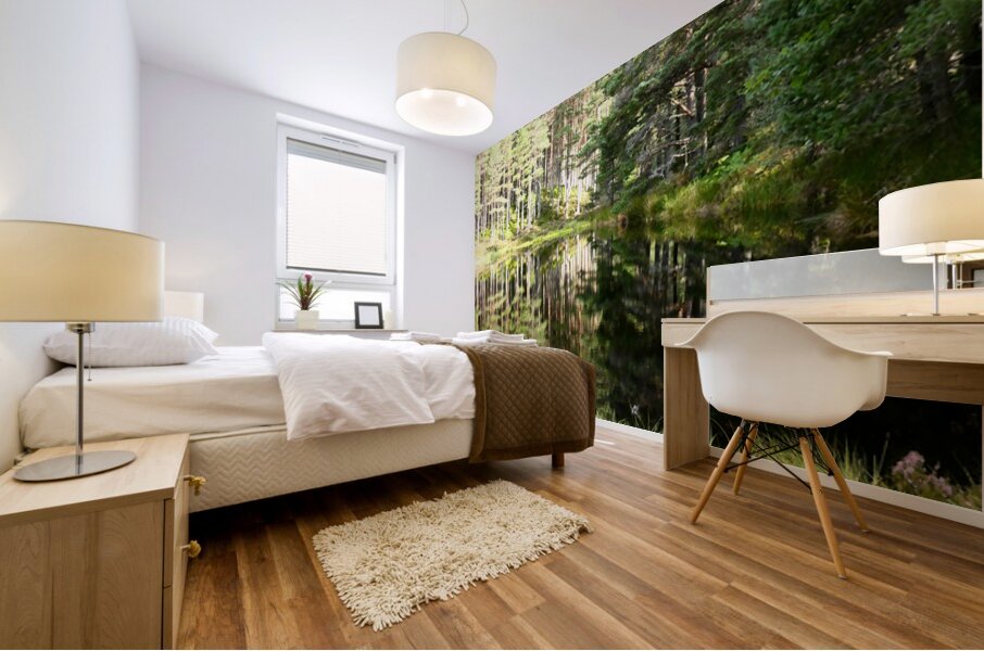 I took this photo during a lovely summer nature walk through the Scottish Highlands. Features a serene Pine forest showcasing a lochan with clear refl...[+]