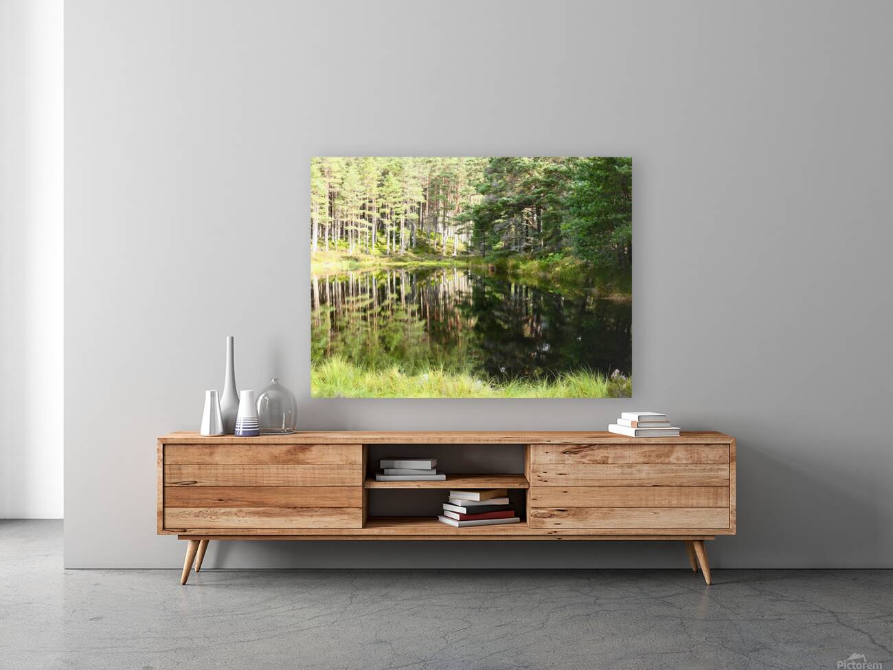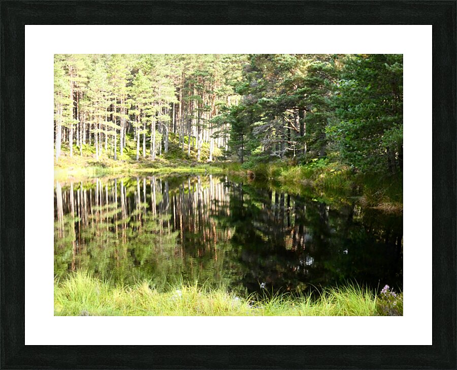 Get this artwork "Scottish Highlands Pine Lochan View" in a framed print.