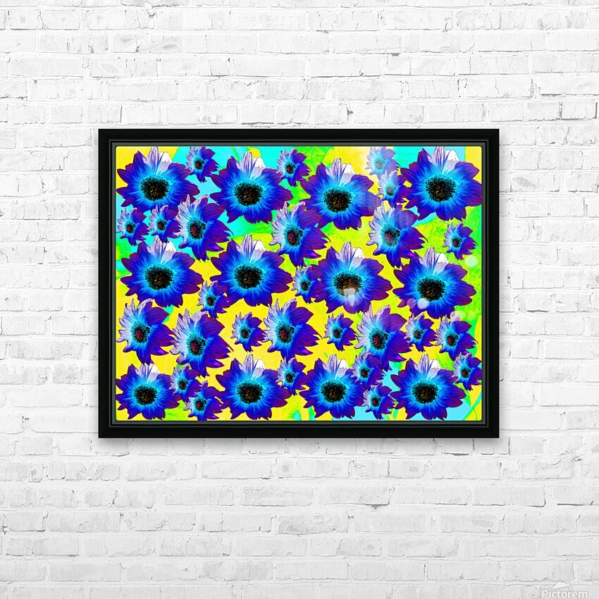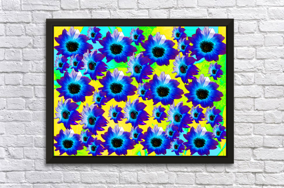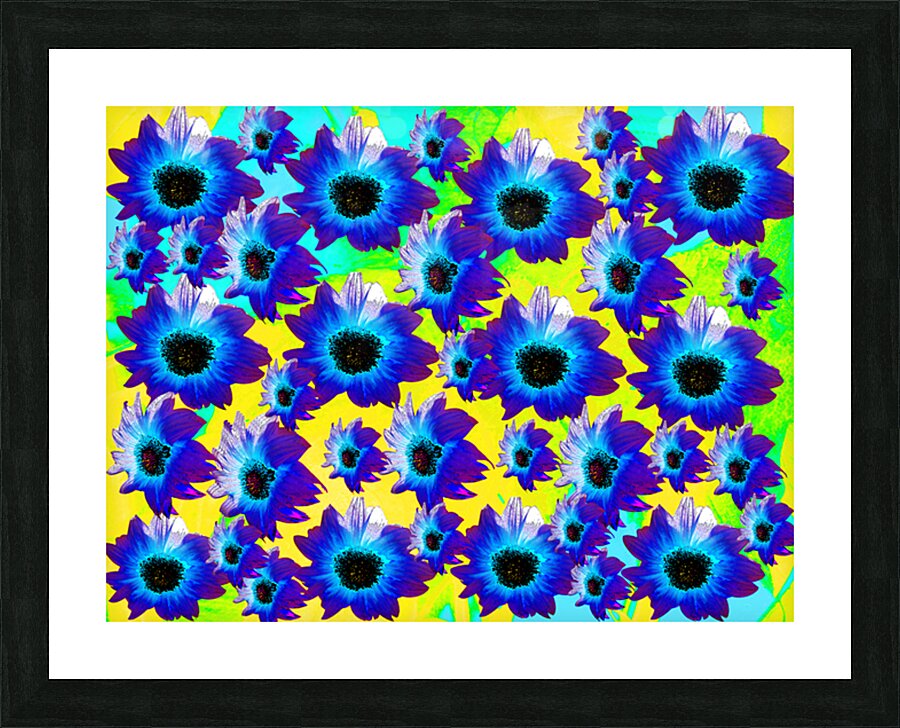 Abstract Vibrant Turquoise Sunflowers Picture Frame Printing