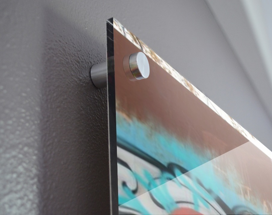 Printed to the edge - Ready to hang - provided with 4 premium polished aluminum stand off ( wall screws and mounting hardware provided )