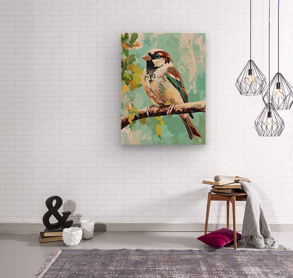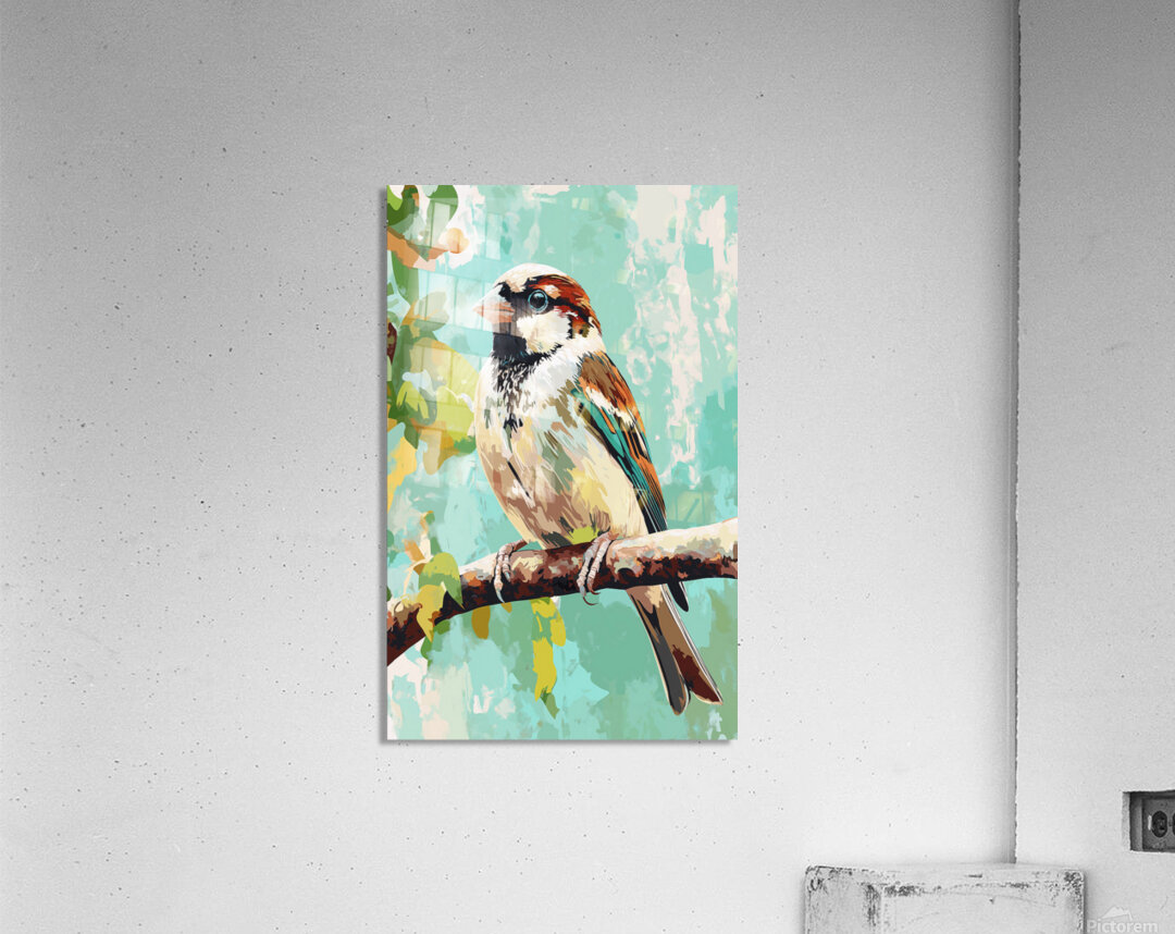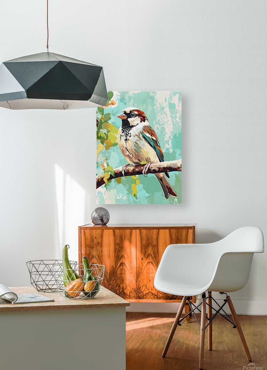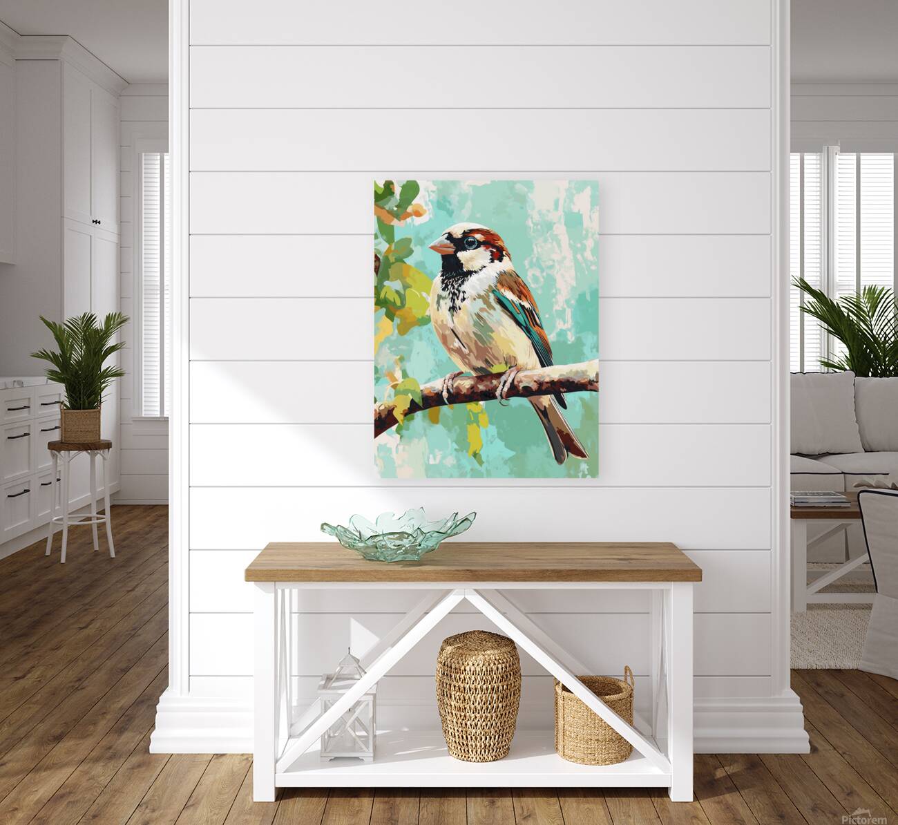 A vintage style drawing of a small sparrow sitting on a branch Canvas print