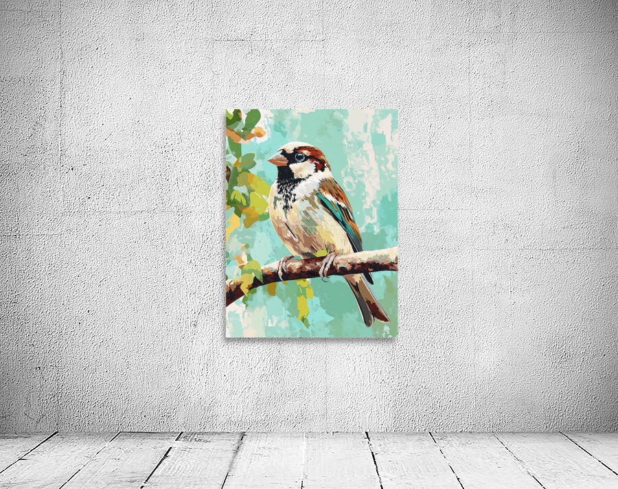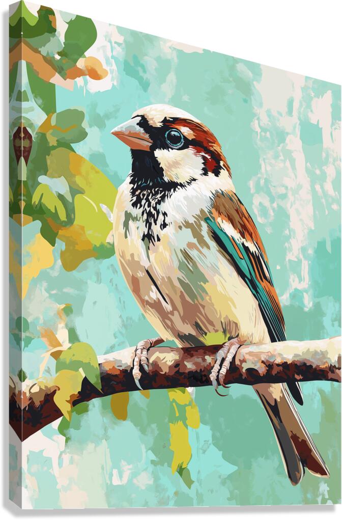 A VINTAGE STYLE DRAWING OF A SMALL SPARROW SITTING ON A BRANCH VAIVIRGA  Canvas Print