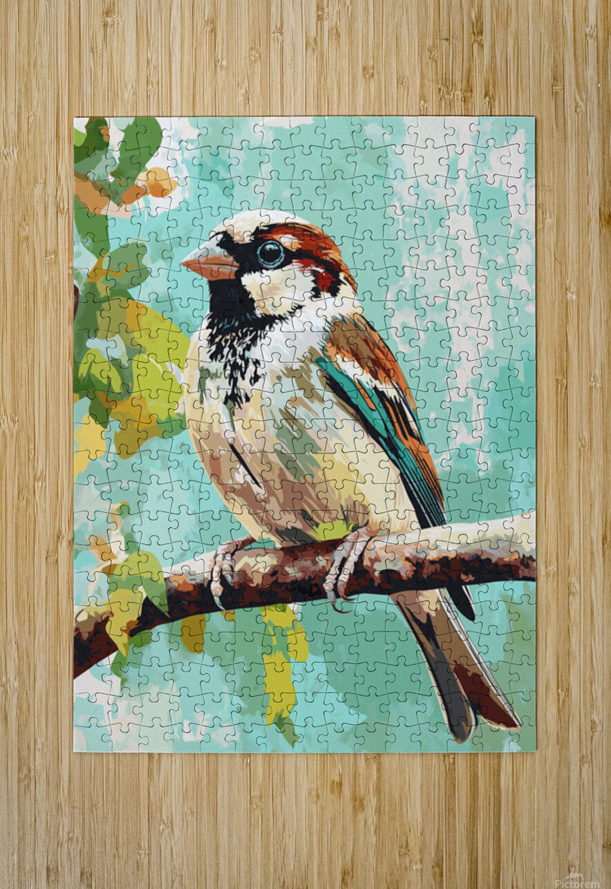 A vintage style drawing of a small sparrow sitting on a branch Vaivirga Puzzle printing