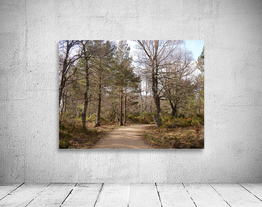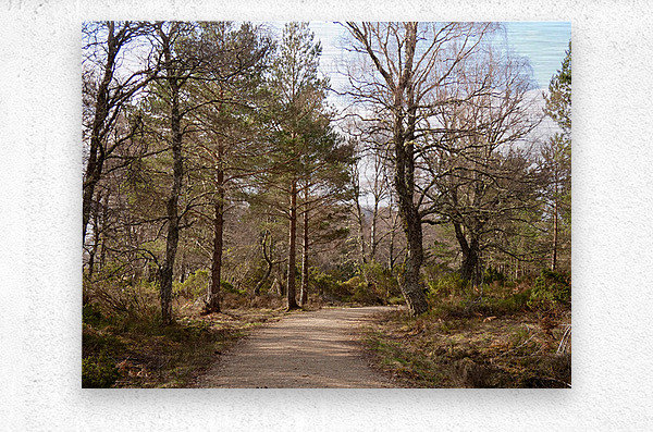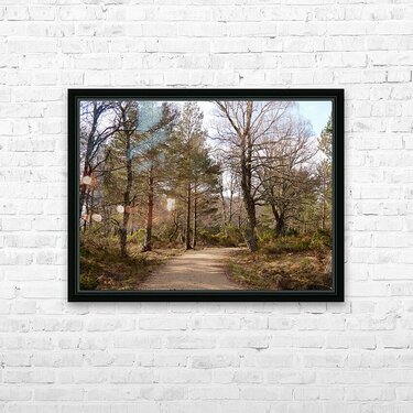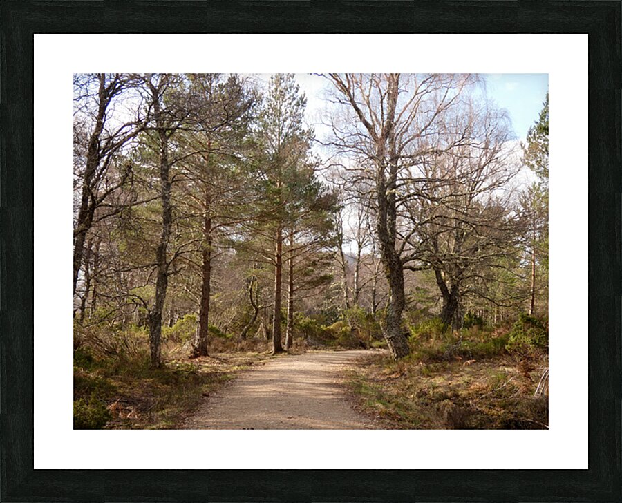 I took this photo during a lovely winter nature walk through the Scottish Highlands. Features a winding dirt path meandering through a serene forest, ...[+]