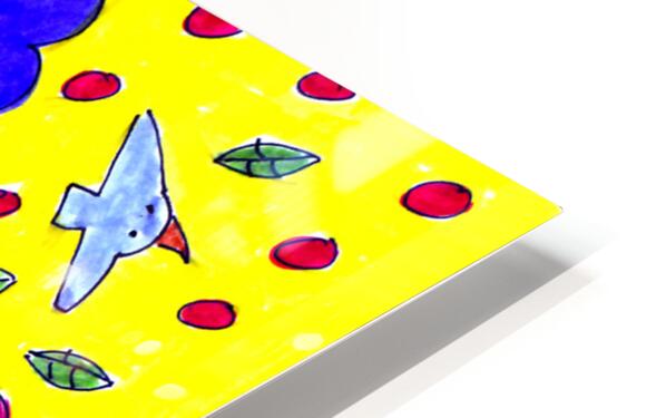 A hand drawn design created using coloured ink pens and paper. Features a whimsical scene depicting colorful trees with birds perched on their branche...[+]