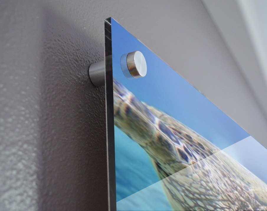 Printed to the edge - Ready to hang - provided with 4 premium polished aluminum stand off ( wall screws and mounting hardware provided )