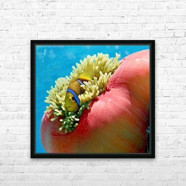 Get this artwork "My home my castle a clown fish and its anemone " in a framed print.